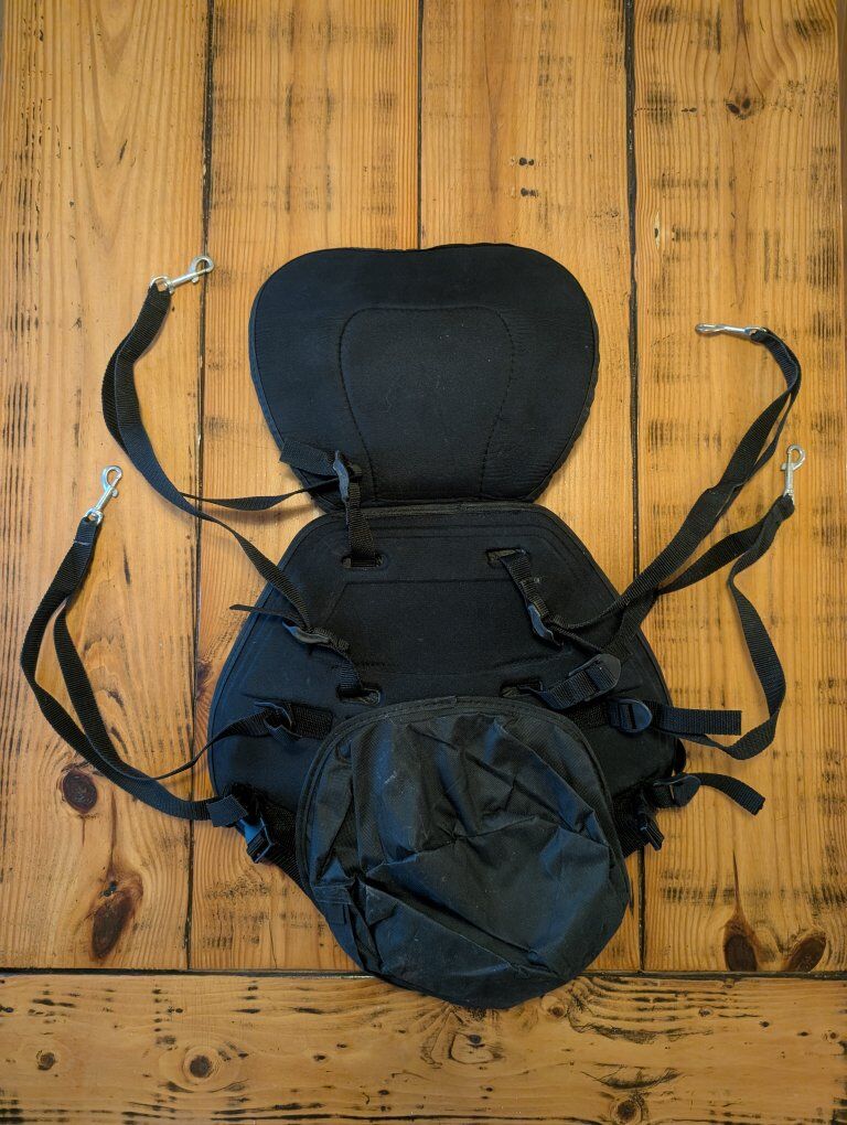 Venmokayak seat with attached storage bag. used and show some sun fading.