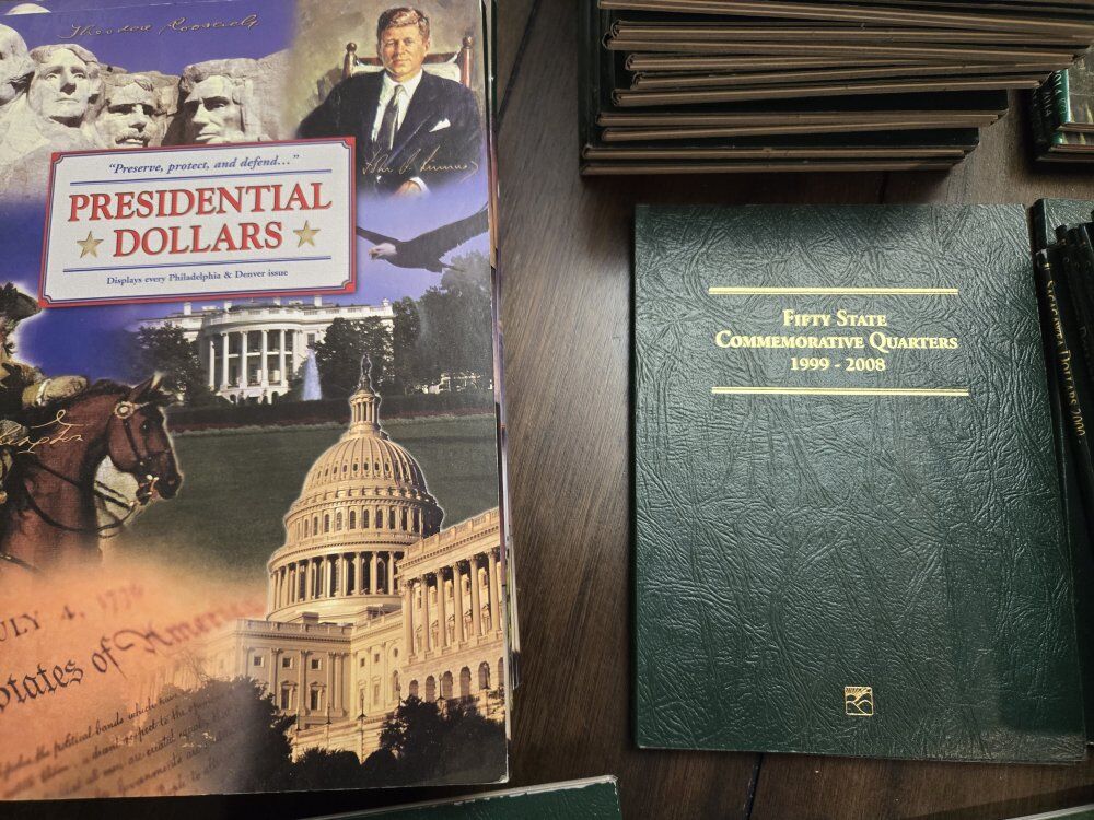 there is a total of 65 books in the lot. See photos for the exact books. All books in a stack are the same. Most are new or possibly slightly used, but I noticed a couple that have a spot or two where the cardboard was pushed through from the back as if someone was pushing a coin out. Would like to sell them all as one lot. $80 for the whole lot of 65 books. $2.50 each of you want individuals. Great for a coin shop, boutique shop, or scout or rec groups. Cash only, no Venmo. Located in Erda, just north of Tooele. NO DELIVERY.