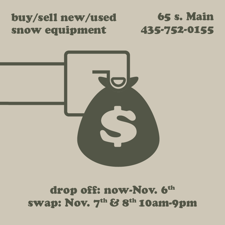 Have any used, new, slightly new, good and used snow equipment by November 6th and list it for sale in our annual snow swap!