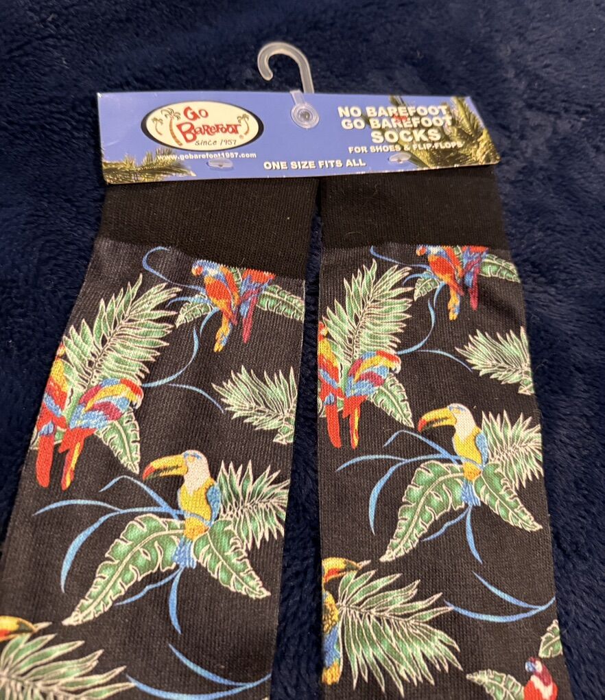 VenmoBrand new with tags Wear with sandals because they have the big toe slot. One size fits all Black with parrot print Crew sock