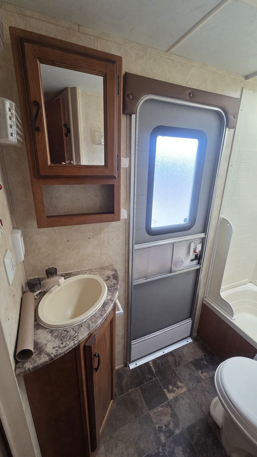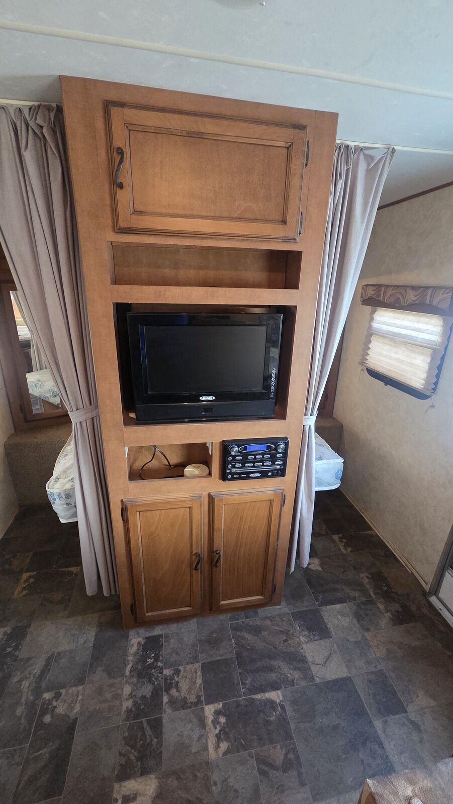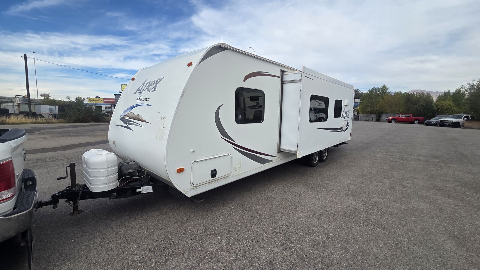 Key Specs (Factory Brochure): • Length – 31′ 2″ • Dry Weight – 5,476 lbs • Hitch Weight – 664 lbs • GVWR – 7,000 lbs • Fresh Water – 30 gal • Gray Water – 35 gal • Black Water – 35 gal • Slide-Outs – 1 • A/C – 13,500 BTU • Furnace – 20,000 BTU • Construction – Laminated Azdel / Aluminum framed