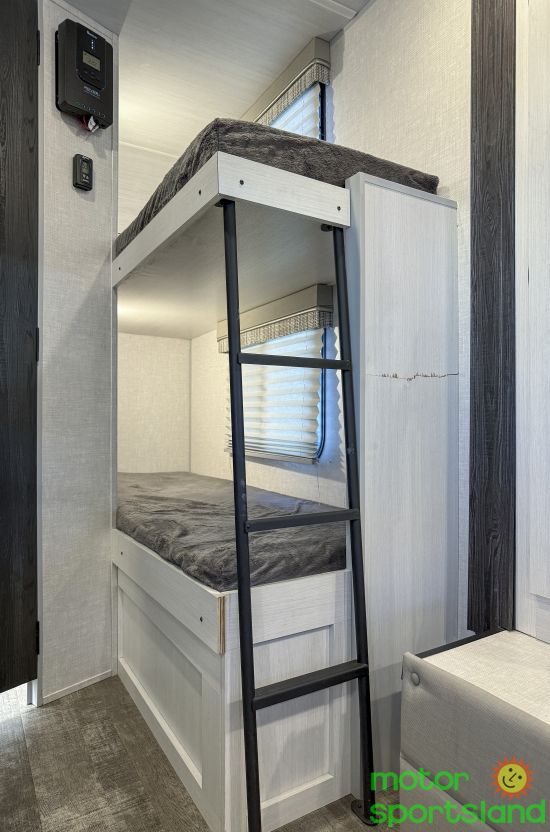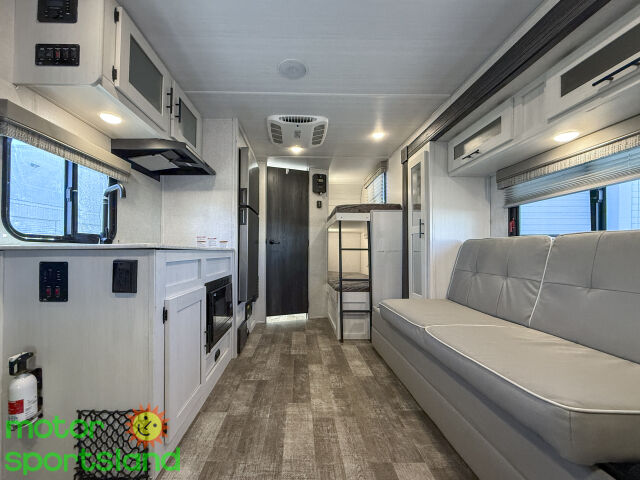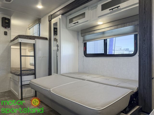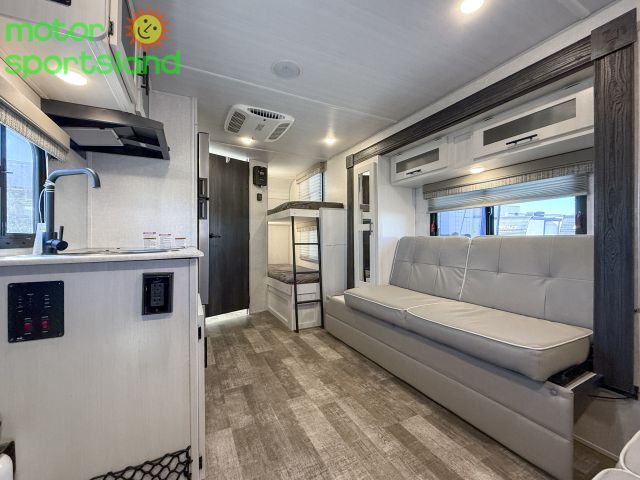 Family-Friendly Design: Sleeps up to 5 with a bunkhouse layout, ensuring everyone has a comfy spot to rest after a day of adventure. Luxury on the Go: Features a premium interior with modern amenities, including a fully equipped kitchen and cozy dinette for family meals. Ultimate Comfort: Enjoy a private queen bed, air conditioning, and ample storage to keep your essentials organized and accessible. Compact Versatility: Lightweight and easy to tow, this travel trailer fits seamlessly into your active lifestyle without sacrificing space.