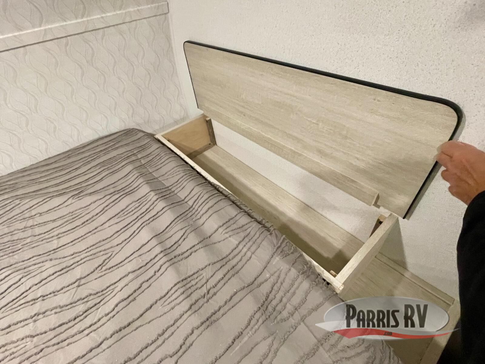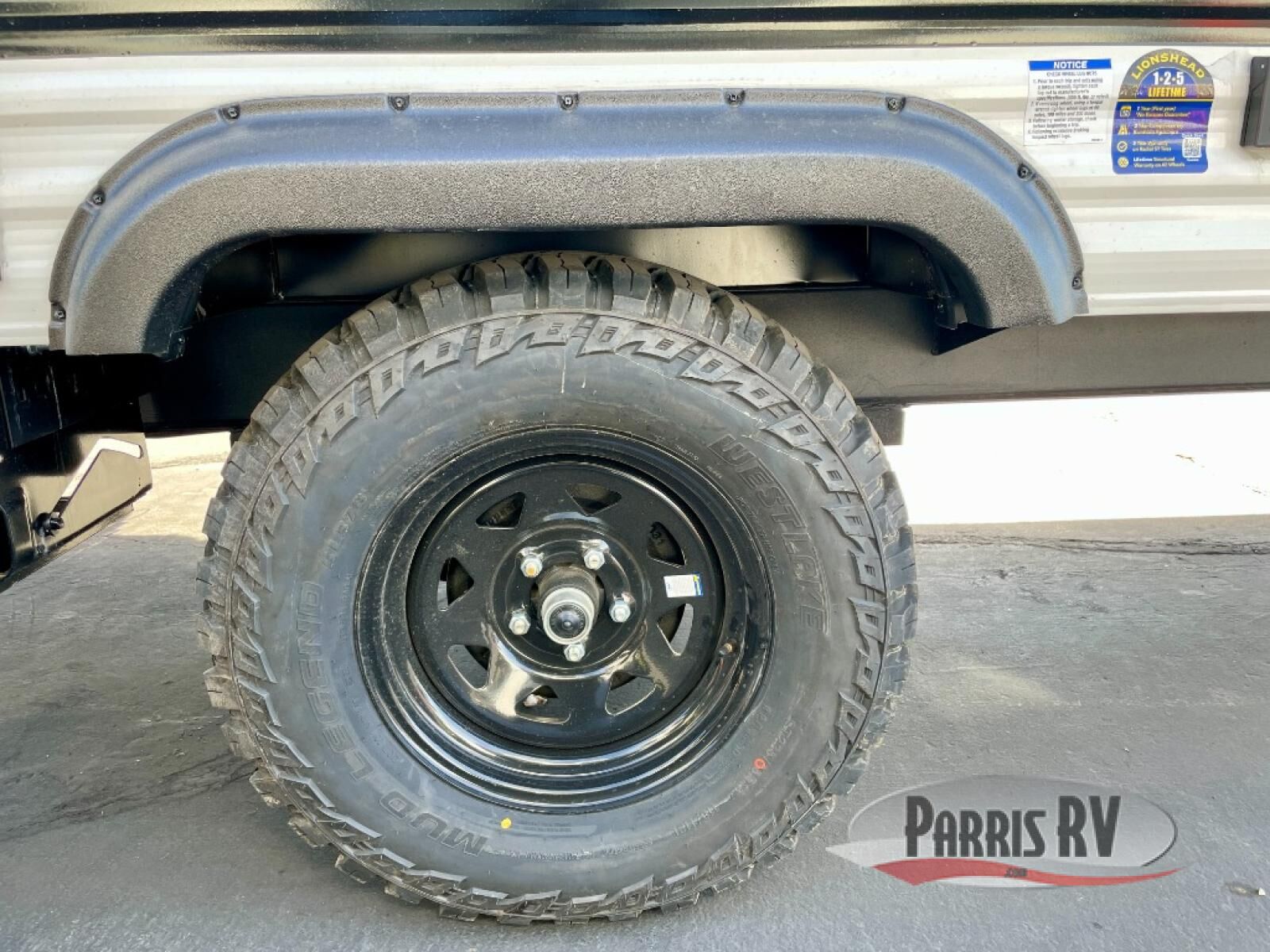 It will be so easy to enjoy camping trips in this single axle travel trailer! There is a front RV queen bed with flip-up storage at the foot of the bed for your belongings, and an additional guest or two little ones can sleep on the booth dinette when it's not being used to dine at. A full kitchen includes a stainless two burner cooktop and stainless microwave to cook meals each day, and the 4.3 cu. ft. 12V black glass refrigerator will keep your food fresh. And a private bath with a toilet and shower will let you freshen up without having to use the camp's facilities!