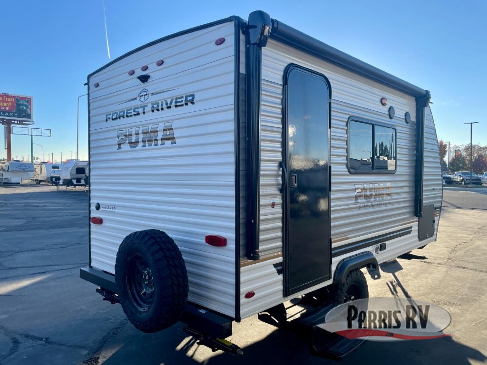 The Puma Camping Edition by Palomino offer an affordable travel trailer for rookie campers or seasoned RVers! They are built with 5/8" tongue and groove plywood flooring and a front diamond plate for added protection. There are also exterior clamp style door latches, back up camera prep, and 20 lb. LP bottles. Head inside to find Thermofoil countertops with a smooth drop edge, bedroom USB ports and outlets, and a GE appliance and kitchen package.
