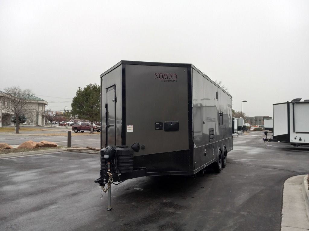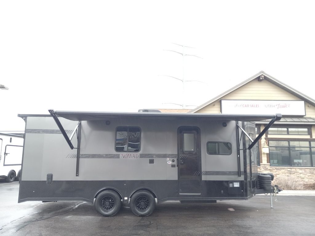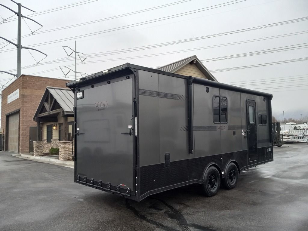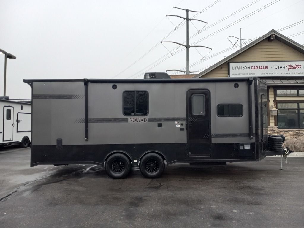 LIMITED TIME $474 A MONTH WITH ZERO DOWN WITH OUR SPECIAL LOCAL CREDIT UNION PARTNER!!! NO PRE-PAYMENT PENALTIES!!! !! NEW NOMAD 22FK MODEL!!! WILL FIT ANY STOCK SIDE BY SIDE UTV!!! 12,000# GVWR/6k AXLES!!! FULLY INSULATED!!! HEATING AND A/C!!! STEREO!!! 7FT-6" Interior Height/ 36" Wedge Front 2x6 Tube Steel Main Rails 16" O/C Floor Tube Crossmembers 16" O/C Steel Tube Wall Studs 24" O/C Tube Steel Roof Bows 18" Extended Triple Tube A-Frame Lippert Torsion Axles w/32 Deg Down Start Angle 6000# Axles w/ST235/80R16 Tires (TA4) 40" Spread Axles Electric Brakes 2-5/16 Adjustable A-Frame Coupler 5000# Electric A-Frame Tongue Jack 4000# Rear Cableless Ramp Door w/Steel Flap (2) Roof Vent in Living/Garage Area (1) Prep & Wired for A/C - Main A/C only 12V Roof Vent in Bathroom Painted Tongue/Rear Sill Black (1) Pair Rear Stab Jacks Rear Flare w/(2) 12V Loading Lights 48" Beavertail ****PLUMBING****46 Gallon Fresh Water Tank (2) 43 Gallon Waste Holding Tank Sewer Hose Storage Compartment Double 20# LP Bottle w/Cover on A-Frame 6 Gallon DSI LP Gas/Electric Water Heater 12V Water Pump City/Gravity Water Fill Hook Up Outside Shower and RV Toilet Bathroom Mirror & Robe Hooks 24x36 Shower w/Shower Curtain & Surround Drop-In Cook Top Large Single Bowl Kitchen Sink Tank and Battery Monitor Panel ****ELECTRICAL****7-Way Electical Plug LED Strip Taillights/Marker Lights 12V Deluxe LED Lighting 45 Amp RV Power Center w/12V Converter 30 Amp Motorbase Plug Detachable Twistlock Power Cord Battery Box Only (Battery not included) 110V GFI Receptacle in Kitchen Area (2) 110V Receptacles in Garage Area Dual USB Ports in Kitchen 6 Cubic Foot Refrigerator Microwave Oven 35K BTU Furnace 110V Exterior GFI Receptacle TV Prep Package - Includes: Coax Cable Outlets - Interior & Exterior Omnidirectional TV Antenna UHF/VHF 110V 4FT LED Cove Lights in Living/Garage Area Smoke, CO, & LP Detector & Fire Extinguisher *INTERIOR*3/4" Drymax Floor & 3/8" Wht Vinyl Walls Ploystyrene Foam Insulation-Walls & Ceiling ATP Rubber Floor Covering White Vinyl Ceiling Liner w/Black Cove Molding Black Kitchen L-Base Cabinet w/Laminate C-Top Black Kitchen L-Overhead Cabinet (4) 5000# Recessed D-Rings Large Front Storage Area w/Shelf (1) Pair Black Aluminum Directional Vents ****ROOF****Seamless Aluminum Flat Top Roof LED Marker Lights Rear Flare w/(2) 12V Loading Lights ***METAL**.080 Screwless Armor Shield Composite Skin STD Colors:Crystal White, Black, Matte Black Windstar Silver, Victory Red, Pewter, Charcoal 3" Heavy Duty Flat Top Trim 3" Flat Bottom Trim & 6" Barrier Tape All Black Exterior Trim & ATP Fenders 24" Tall Slanted Diamond Plate Stoneguard 24" Tall Diamond Plate along sides at bottom (1) Pair Black Aluminum Directional Vents *DOORS & WINDOWS****26W x 78H Radius Corner Deluxe RV Door w/Window & Screen Aluminum Door Holdback Double Fold Out RV Step 4000# Rear Cableless Ramp Door w/Steel Flap All Black Zinc Coated Door Hardware 24Wx72H Door w/Barlock in Front Storage 30x15 Window in Kitchen Area 30x30 Window in Living/Garage Area 30x22 Egress Window in Living/Garage Area Window Coverings - In Garage Area (Only) ****FINAL*LED Strip Tailights/Marker Lights 12V Deluxe LED Lightning Black Aluminum Wheels w/Radial Tires & Black Center Caps Recessed Spare Tire Compartment Limited 3 Year Structural Warranty 01-OPT1.952 Platinum Package Includes: Deluxe Stereo Package with: AM/FM/CD/DVD/USB/MP3/WMA Capable Stereo, (4) Hi Output Weatherproof Speakers (2) Interior & (2) Exterior 43" TV w/swivel bracket Rear Hide-A-Screen Solar Port HappiJac Bed Lift System: (Includes (1) Queen Mattress Setup) 7SE100615