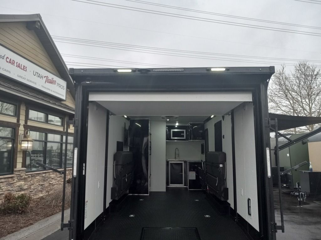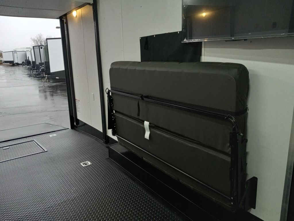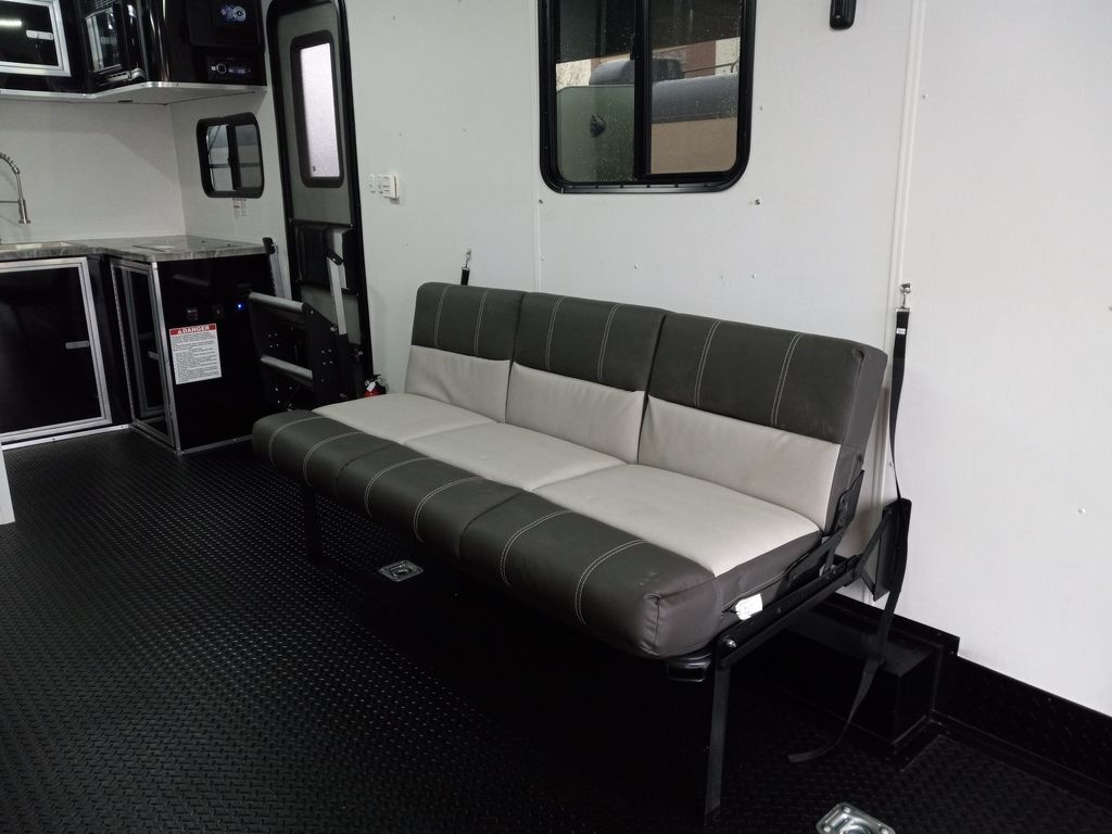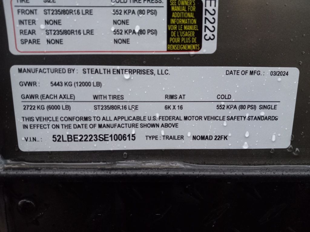 LIMITED TIME $474 A MONTH WITH ZERO DOWN WITH OUR SPECIAL LOCAL CREDIT UNION PARTNER!!! NO PRE-PAYMENT PENALTIES!!! !! NEW NOMAD 22FK MODEL!!! WILL FIT ANY STOCK SIDE BY SIDE UTV!!! 12,000# GVWR/6k AXLES!!! FULLY INSULATED!!! HEATING AND A/C!!! STEREO!!! 7FT-6" Interior Height/ 36" Wedge Front 2x6 Tube Steel Main Rails 16" O/C Floor Tube Crossmembers 16" O/C Steel Tube Wall Studs 24" O/C Tube Steel Roof Bows 18" Extended Triple Tube A-Frame Lippert Torsion Axles w/32 Deg Down Start Angle 6000# Axles w/ST235/80R16 Tires (TA4) 40" Spread Axles Electric Brakes 2-5/16 Adjustable A-Frame Coupler 5000# Electric A-Frame Tongue Jack 4000# Rear Cableless Ramp Door w/Steel Flap (2) Roof Vent in Living/Garage Area (1) Prep & Wired for A/C - Main A/C only 12V Roof Vent in Bathroom Painted Tongue/Rear Sill Black (1) Pair Rear Stab Jacks Rear Flare w/(2) 12V Loading Lights 48" Beavertail ****PLUMBING****46 Gallon Fresh Water Tank (2) 43 Gallon Waste Holding Tank Sewer Hose Storage Compartment Double 20# LP Bottle w/Cover on A-Frame 6 Gallon DSI LP Gas/Electric Water Heater 12V Water Pump City/Gravity Water Fill Hook Up Outside Shower and RV Toilet Bathroom Mirror & Robe Hooks 24x36 Shower w/Shower Curtain & Surround Drop-In Cook Top Large Single Bowl Kitchen Sink Tank and Battery Monitor Panel ****ELECTRICAL****7-Way Electical Plug LED Strip Taillights/Marker Lights 12V Deluxe LED Lighting 45 Amp RV Power Center w/12V Converter 30 Amp Motorbase Plug Detachable Twistlock Power Cord Battery Box Only (Battery not included) 110V GFI Receptacle in Kitchen Area (2) 110V Receptacles in Garage Area Dual USB Ports in Kitchen 6 Cubic Foot Refrigerator Microwave Oven 35K BTU Furnace 110V Exterior GFI Receptacle TV Prep Package - Includes: Coax Cable Outlets - Interior & Exterior Omnidirectional TV Antenna UHF/VHF 110V 4FT LED Cove Lights in Living/Garage Area Smoke, CO, & LP Detector & Fire Extinguisher *INTERIOR*3/4" Drymax Floor & 3/8" Wht Vinyl Walls Ploystyrene Foam Insulation-Walls & Ceiling ATP Rubber Floor Covering White Vinyl Ceiling Liner w/Black Cove Molding Black Kitchen L-Base Cabinet w/Laminate C-Top Black Kitchen L-Overhead Cabinet (4) 5000# Recessed D-Rings Large Front Storage Area w/Shelf (1) Pair Black Aluminum Directional Vents ****ROOF****Seamless Aluminum Flat Top Roof LED Marker Lights Rear Flare w/(2) 12V Loading Lights ***METAL**.080 Screwless Armor Shield Composite Skin STD Colors:Crystal White, Black, Matte Black Windstar Silver, Victory Red, Pewter, Charcoal 3" Heavy Duty Flat Top Trim 3" Flat Bottom Trim & 6" Barrier Tape All Black Exterior Trim & ATP Fenders 24" Tall Slanted Diamond Plate Stoneguard 24" Tall Diamond Plate along sides at bottom (1) Pair Black Aluminum Directional Vents *DOORS & WINDOWS****26W x 78H Radius Corner Deluxe RV Door w/Window & Screen Aluminum Door Holdback Double Fold Out RV Step 4000# Rear Cableless Ramp Door w/Steel Flap All Black Zinc Coated Door Hardware 24Wx72H Door w/Barlock in Front Storage 30x15 Window in Kitchen Area 30x30 Window in Living/Garage Area 30x22 Egress Window in Living/Garage Area Window Coverings - In Garage Area (Only) ****FINAL*LED Strip Tailights/Marker Lights 12V Deluxe LED Lightning Black Aluminum Wheels w/Radial Tires & Black Center Caps Recessed Spare Tire Compartment Limited 3 Year Structural Warranty 01-OPT1.952 Platinum Package Includes: Deluxe Stereo Package with: AM/FM/CD/DVD/USB/MP3/WMA Capable Stereo, (4) Hi Output Weatherproof Speakers (2) Interior & (2) Exterior 43" TV w/swivel bracket Rear Hide-A-Screen Solar Port HappiJac Bed Lift System: (Includes (1) Queen Mattress Setup) 7SE100615