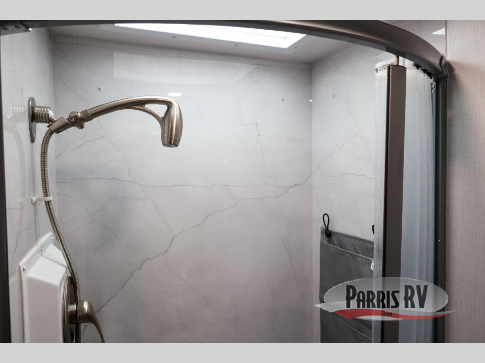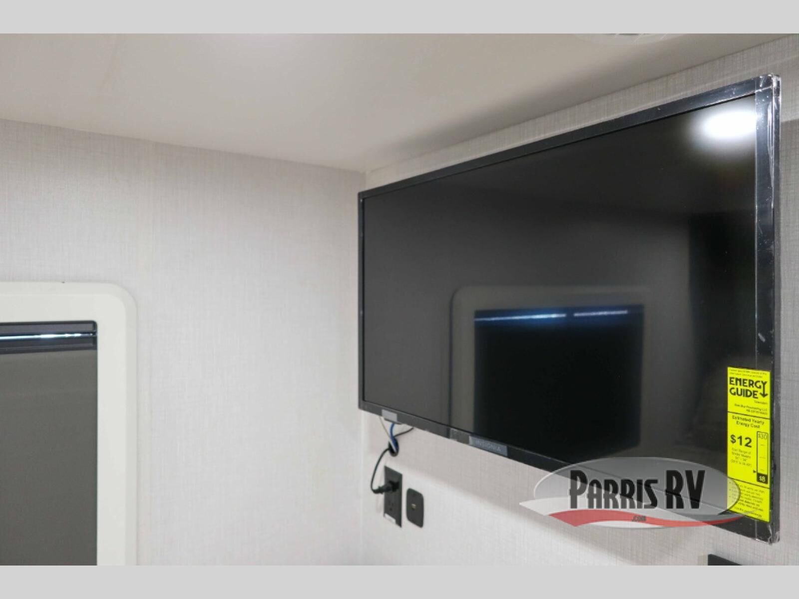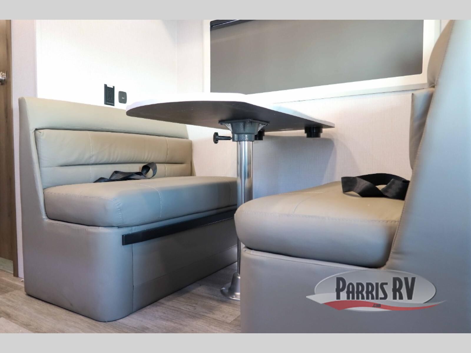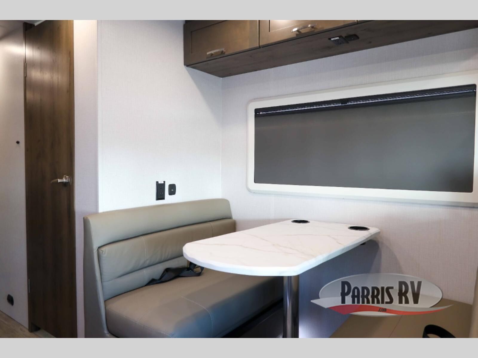 As soon as you step inside this motorhome, you're welcomed by a cozy booth dinette that perfect for enjoying meals or simply relaxing after a day on the road. Directly across, the well-equipped kitchen features all the essentials, including a 12V 8 cu. ft. refrigerator to keep your groceries fresh, a gas range with a glass cover, a convection microwave oven, and a solid surface countertop extension that adds valuable prep space. Adjacent to the dinette is the bathroom, complete with a standard shower enhanced by an Oxygenics Body Spa RV shower head and a skylight for added comfort and natural light, along with a convenient foot-flush toilet. At the rear, you'll find two 30" x 76" beds that can easily convert into an oversized king bed, offering flexible sleeping arrangements. To top it all off, a 32" LED Smart TV lets you unwind with your favorite shows, making this motorhome a true home on wheels.