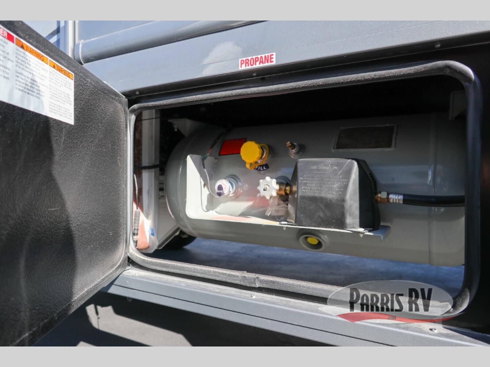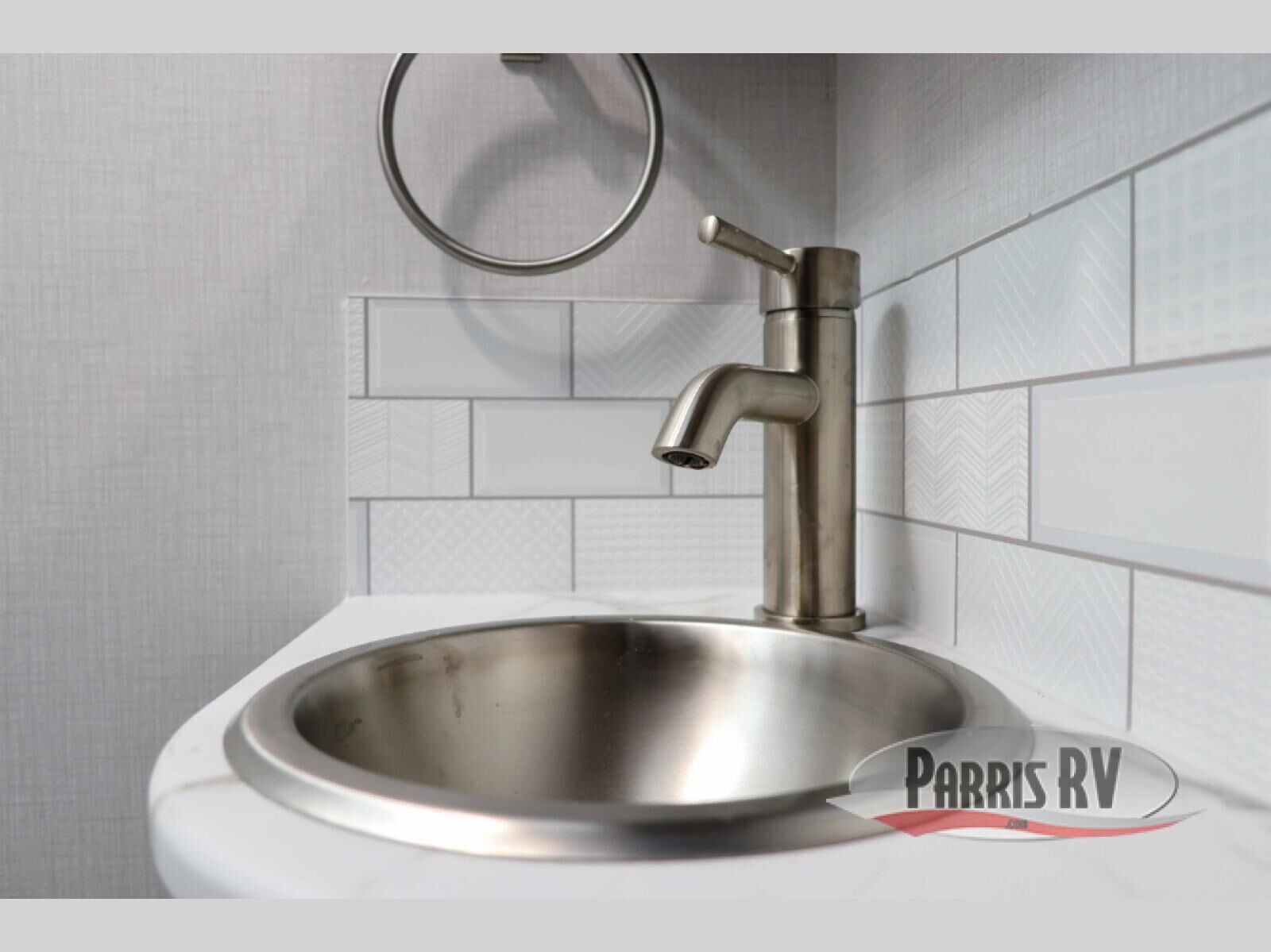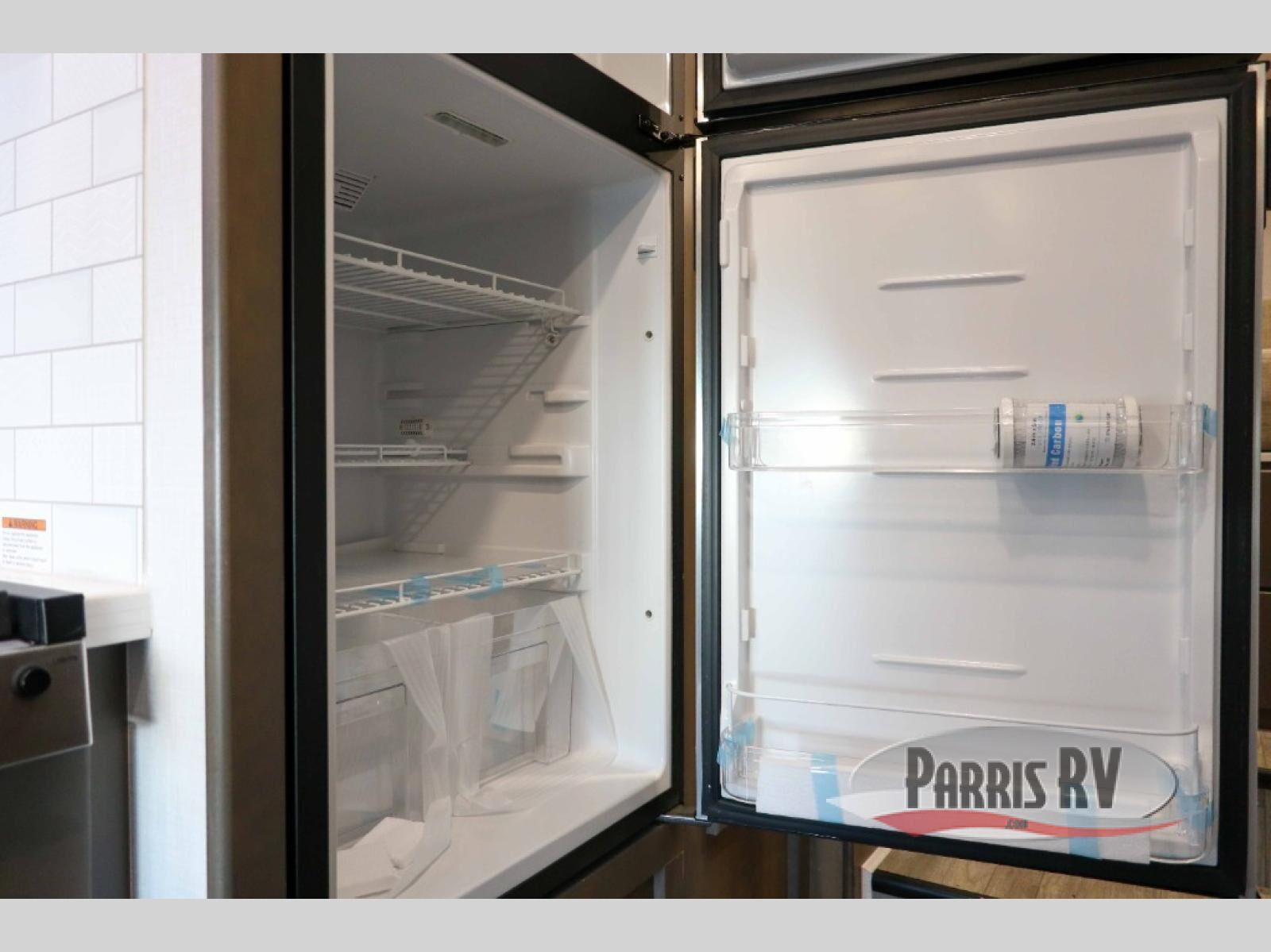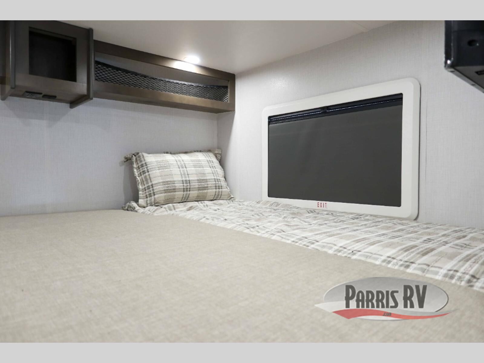 As soon as you step inside this motorhome, you're welcomed by a cozy booth dinette that perfect for enjoying meals or simply relaxing after a day on the road. Directly across, the well-equipped kitchen features all the essentials, including a 12V 8 cu. ft. refrigerator to keep your groceries fresh, a gas range with a glass cover, a convection microwave oven, and a solid surface countertop extension that adds valuable prep space. Adjacent to the dinette is the bathroom, complete with a standard shower enhanced by an Oxygenics Body Spa RV shower head and a skylight for added comfort and natural light, along with a convenient foot-flush toilet. At the rear, you'll find two 30" x 76" beds that can easily convert into an oversized king bed, offering flexible sleeping arrangements. To top it all off, a 32" LED Smart TV lets you unwind with your favorite shows, making this motorhome a true home on wheels.