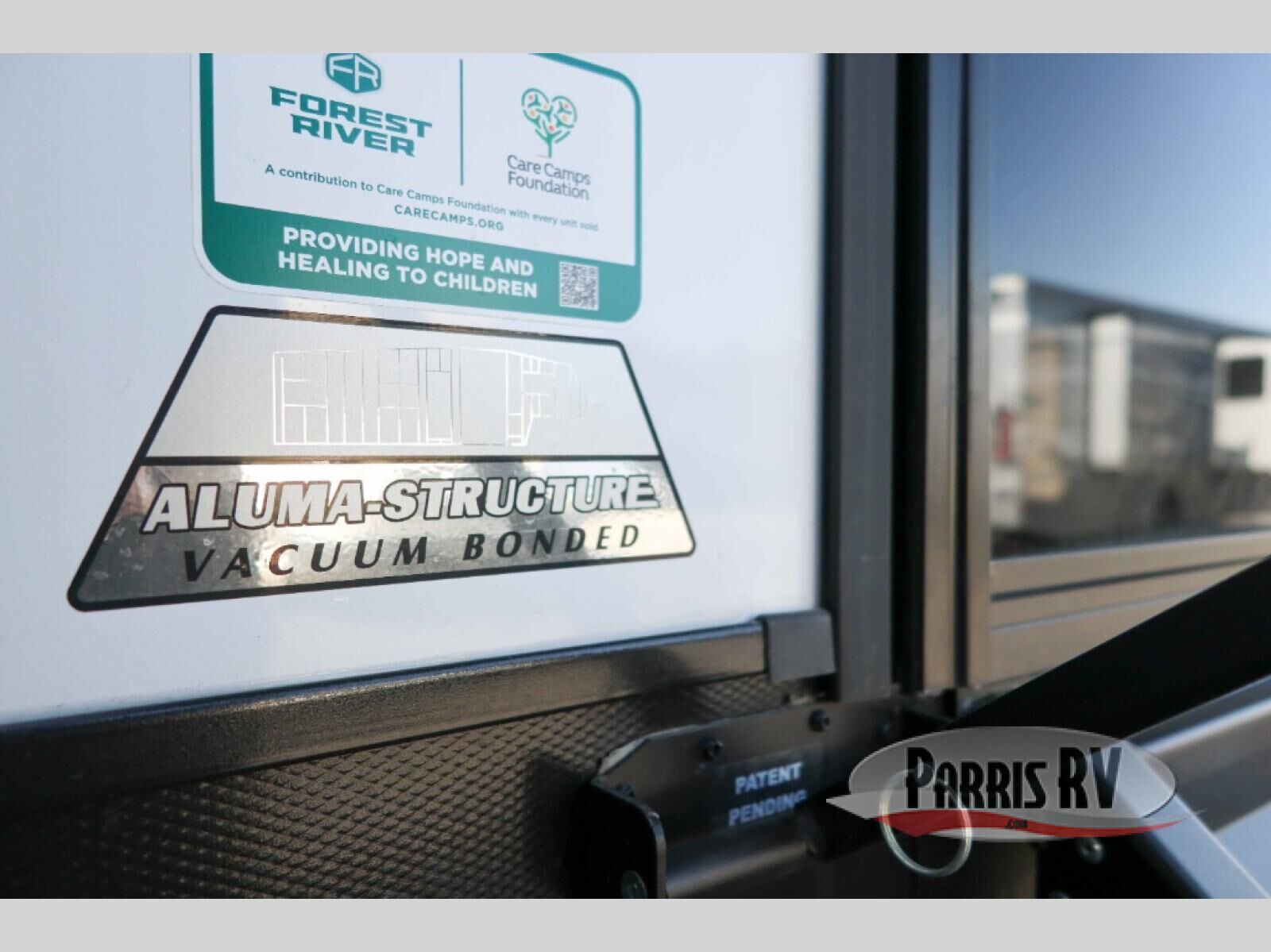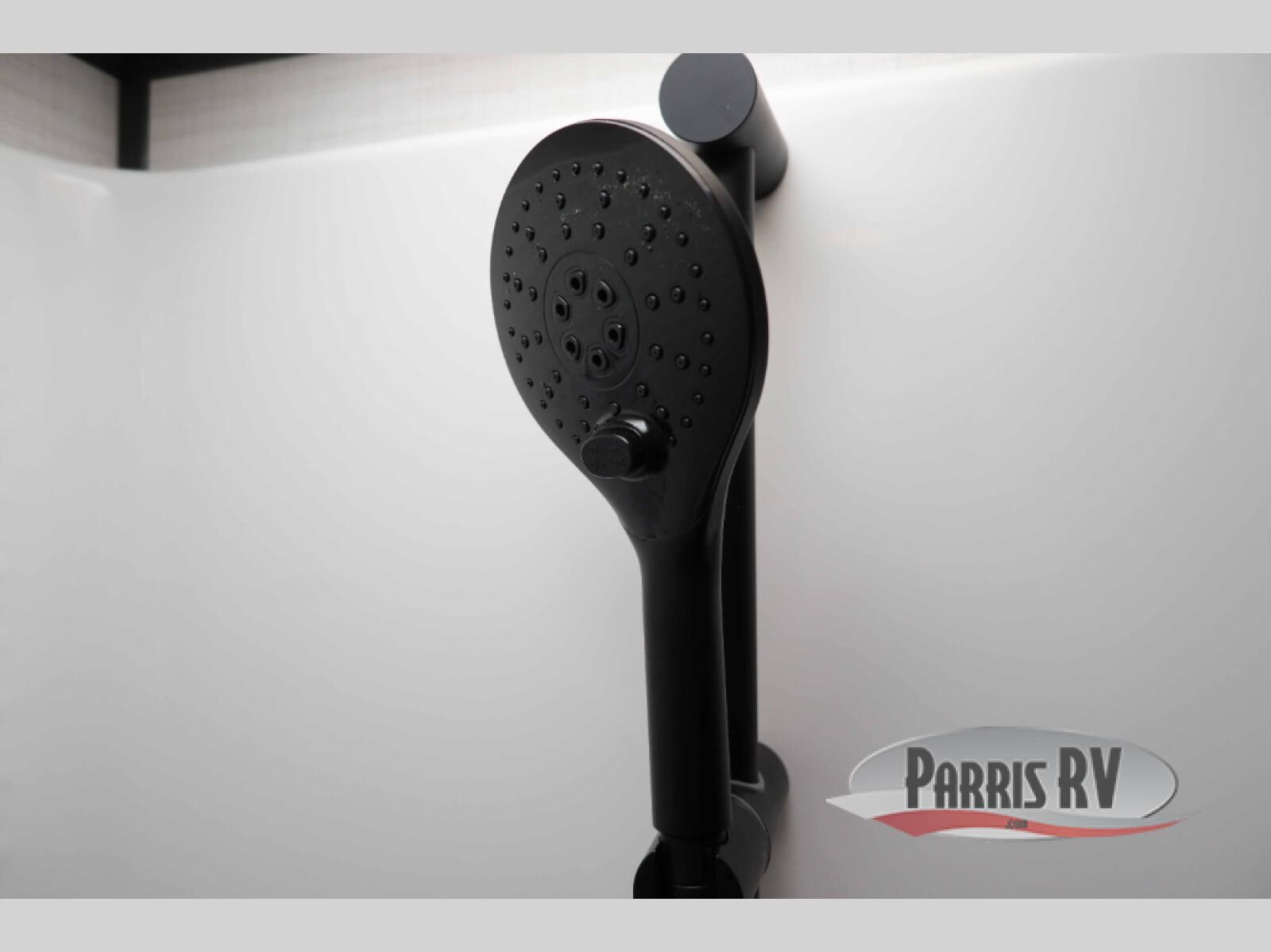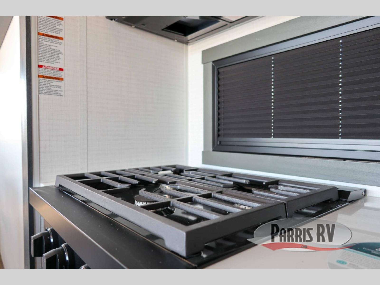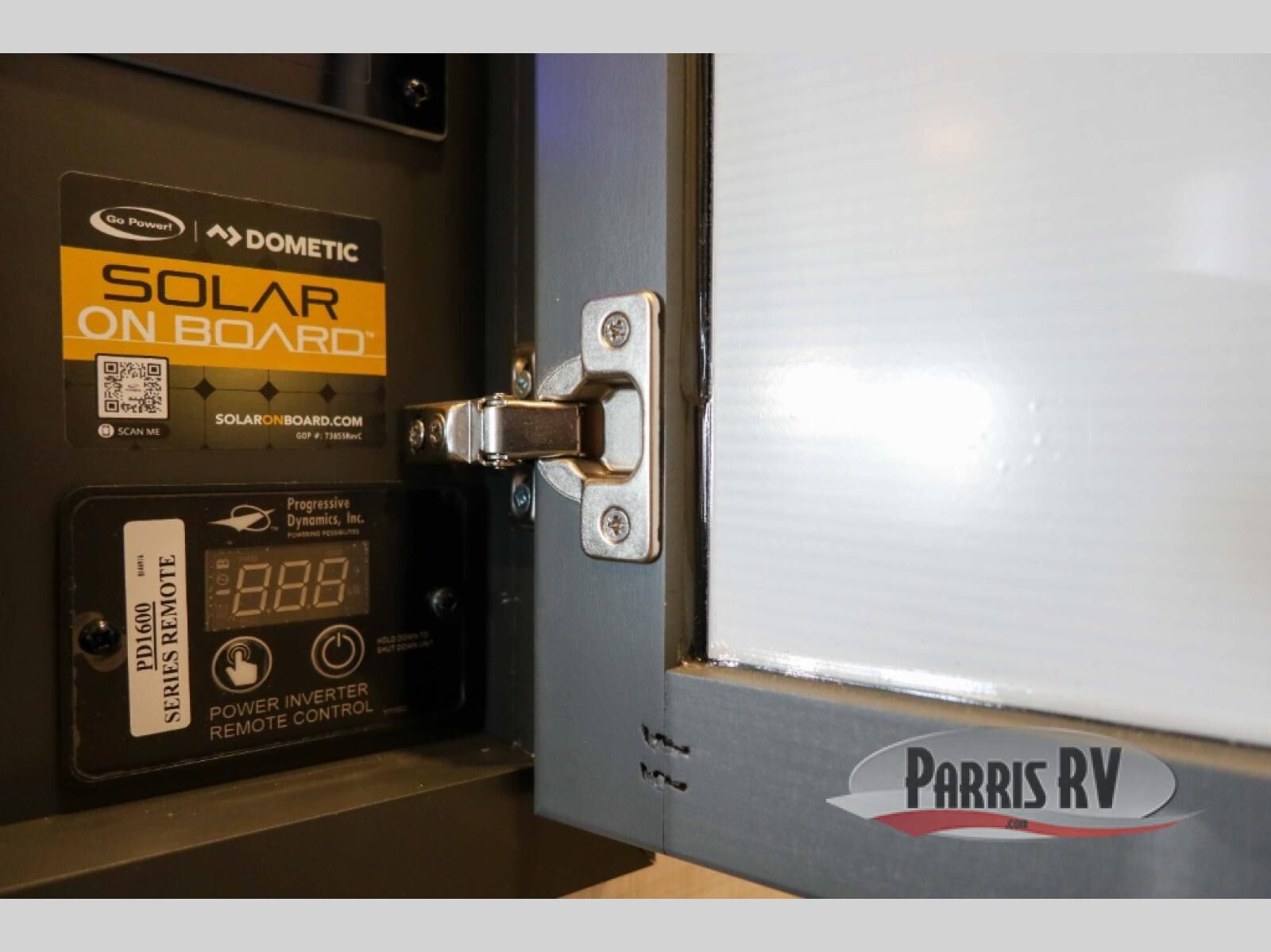 It's easy to see why this model was voted 2025 Top Innovation by RV Business! Once you arrive at your destination, you can unload your toys from the 13' garage, then relax on the dual gaucho sofas with a removable dinette table in between. There is also a queen-size Euro bed above the sofa where guests can sleep. Everyone will love to visit on the side patio that features a flip-down bar top and a window that looks into the kitchen. There are also bar stools here and inside at the counter so everyone has a seat. If the weather isn't cooperating, you can relax on the L-shaped sofa in the main living area, and there is a 55" TV with a hidden pantry behind for snacks! A spacious full bath will let everyone freshen up after trail riding, and you'll love having your own bedroom up front. Here, you'll find a king bed slide out, a wardrobe, dresser, plus washer and dryer prep if you choose to add those appliances!