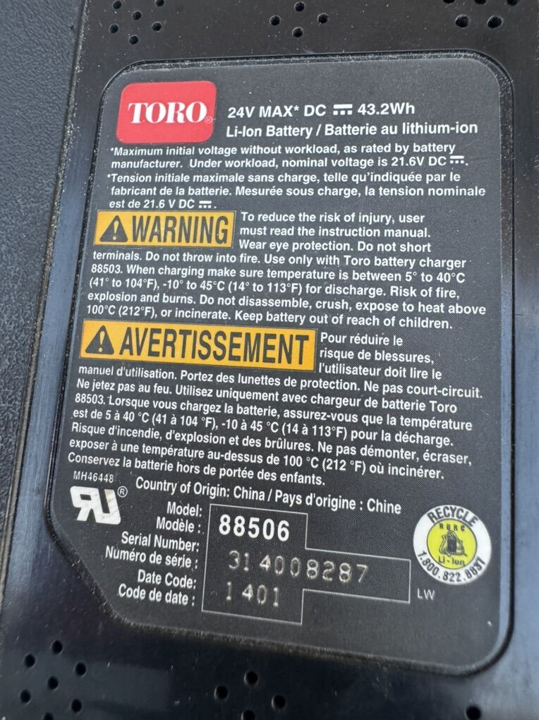 Toro 24 V charger and battery in great condition, works fine $25 Porter-cable charger $20