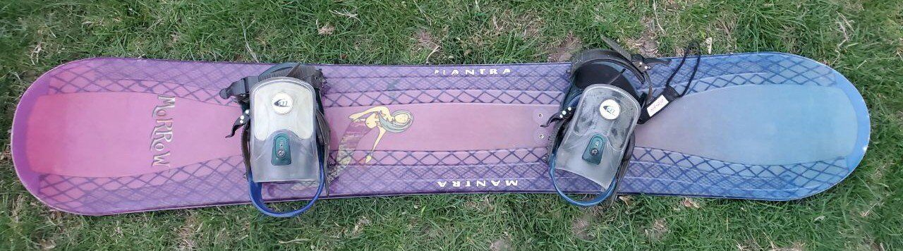 Venmo157 cm Morrow Mantra snowboard in great condition. Morrow bindings that are easy to adjust for a custom fit. Bindings, edges, and bases are all in great riding condition. Text please!
