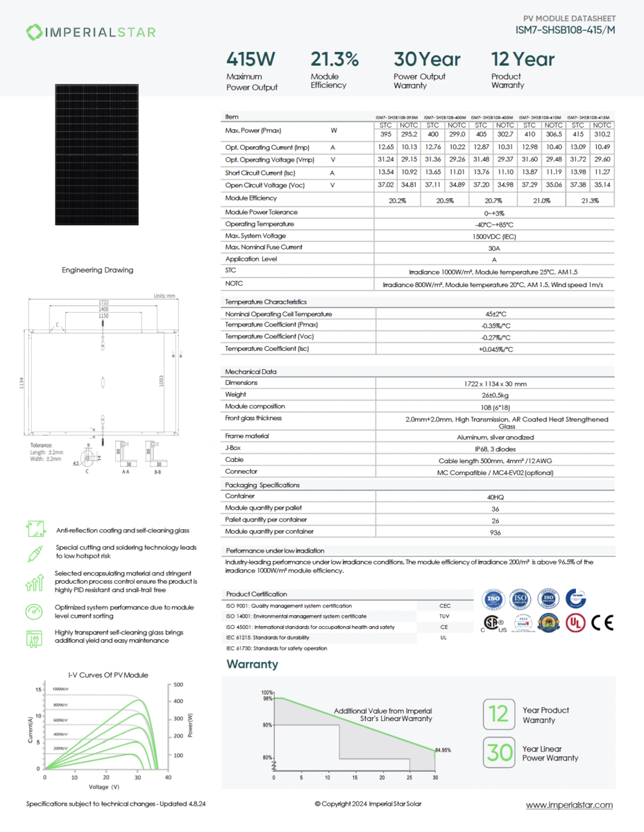 ApplePayYou won’t find brand-new solar panels more affordable than these. They are priced to move for fall. I will match any lower price you find. These same panels retail for $30-40 more than I charge anywhere else. These are brand-new Imperial Star Atlas 405 W solar panels. I have hundreds available. More details at https://payoffsolar.com/product/imperial-star-405-watt-solar-panel-ism7-shdd108-405m. Pricing is: 1-9 panels - $99 per panel 10+ panels - $95 per panel I have 30 pallets, each containing 36 panels, which can be loaded onto your truck or trailer at our warehouse located near the SLC airport. Alternatively, if you prefer fewer, you can arrange to pick them up in South Jordan. We also offer delivery - $100 Wasatch Front, $300 Utah, $400 surrounding states, $600 Western US, and $700 Eastern US. Please message with interest and questions. Thanks for looking!