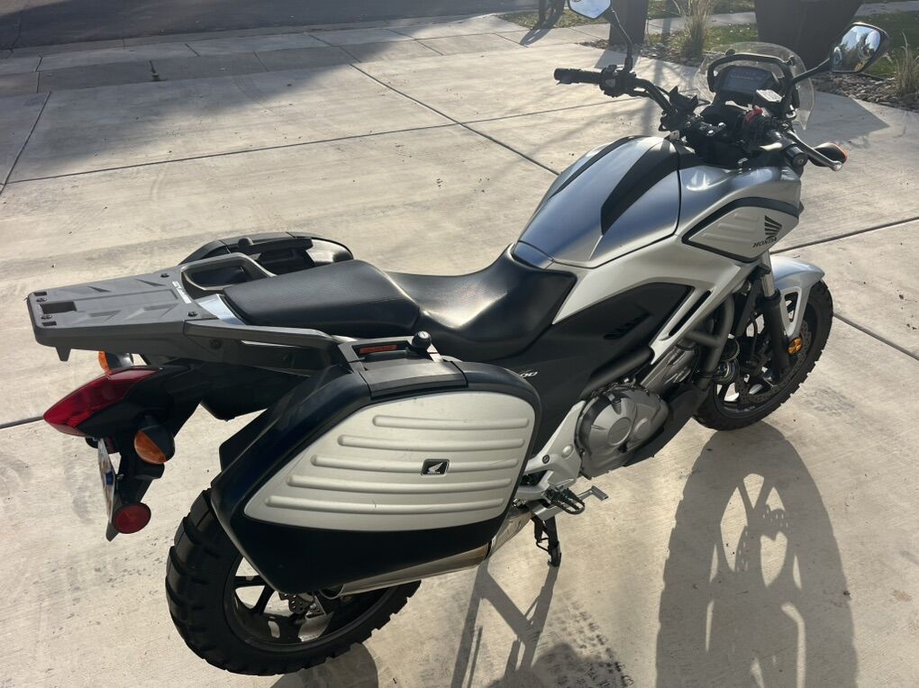 2012 Honda nc700x. Manual shift, not cvt. Clean title. Always kept indoors. 13,482 miles. Has removable saddle bags, cover, different height windshields, and some other extra parts. Oil changes kept up. Newer air filter. Has mixed use tires on it that have good road manners and good dirt road traction. Currently has wider dirtbike pegs on it. Happy to replace them with the stock pegs if you’d like, but I preferred a wider platform. The ‘Frunk’ is amazing. I had no idea how great it would be when I bought the bike. Willing to trade for 40’ one trip HC shipping container. No other trades.