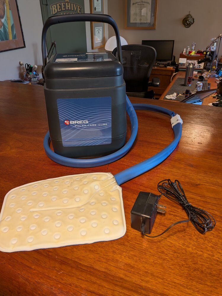 BREG "Polar Care" Regulated Cold Therapy Unit: Complete with power plug and "multi-purpose* pad. Tested and working...really like new...maybe used for one rehab Available immediately, downtown, close to the public library. Thx.