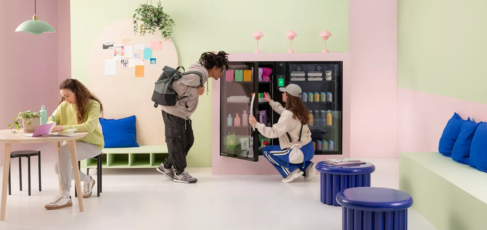 ZelleUp for sale is a premium smart retail cabinet: the Stockwell 2.0 from 365 Retail Markets. This machine combines ambient snack space and a refrigerated section, uses advanced AI/camera technology so customers simply pay and grab – no scanning required. Perfect for office lobbies, hospitality spaces, gyms, colleges, and more.