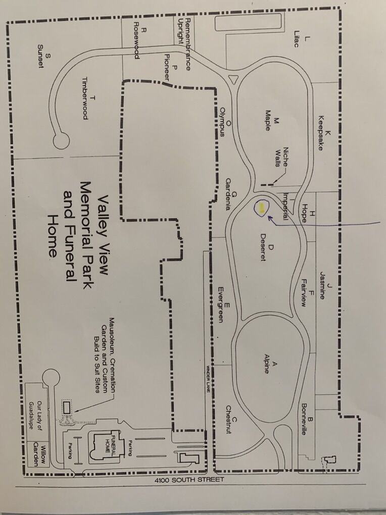 At Valley View Memorial Park, located at: 4335 West 4100 South in West Valley City Four single plots in the south end of the original premiere Deseret Garden D We’re asking $6,00.00 each or… All four (preferred) together $15,000.00