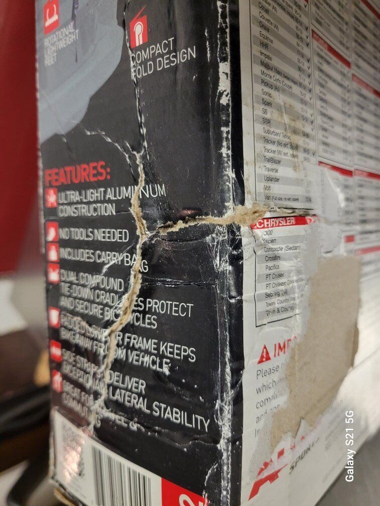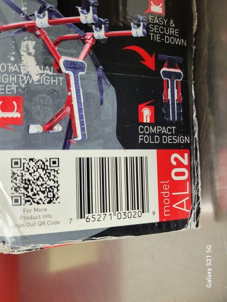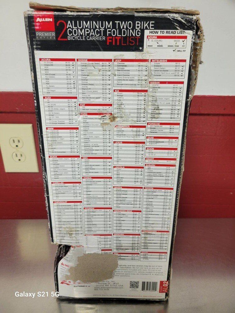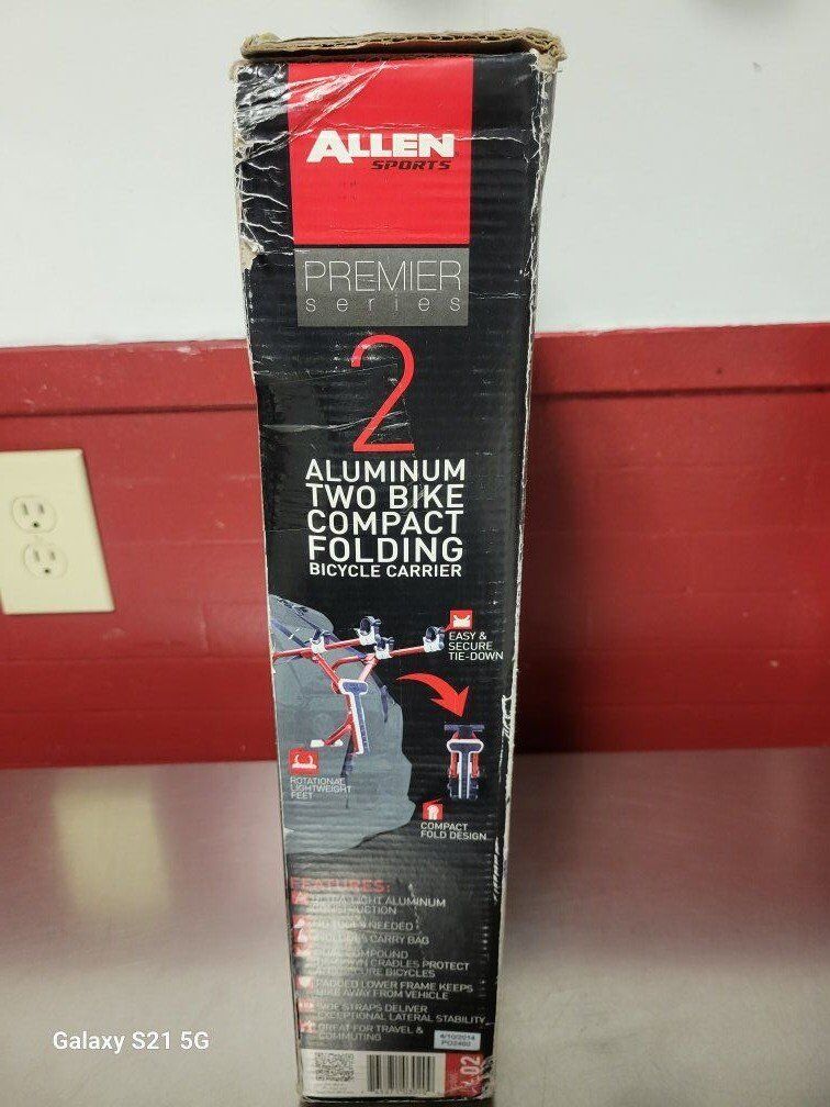Bicycle carrier for your car. Allen Sports Aluminum 2 bike car carrier, new in box but box is highly damaged and torn.