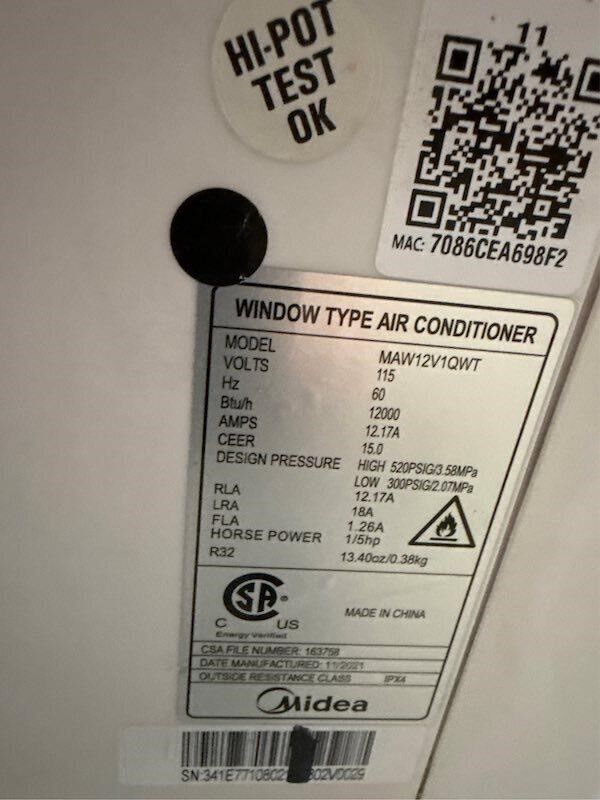 Midea UShaped 12000BTU Air Conditioner (missing remote)