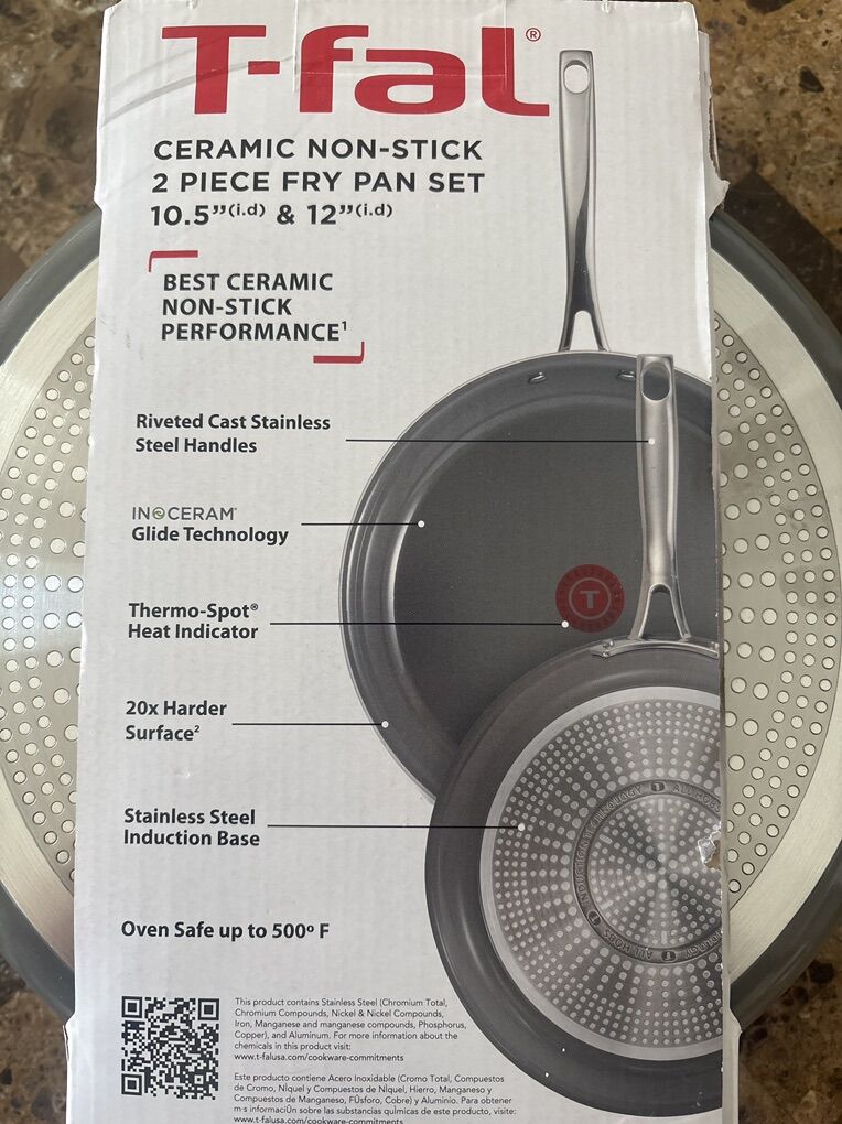 VenmoPicture says it all. Brand New T-fals set of 2 Fry Pans with ceramic nonstick surfaces. Oven safe up to 500F. Famous Thermo-spot indicator lets you know you are ready to cook. Compatible with gas, coil electric, ceramic, halogen and magnetic induction electric heaters. Text preferred, Pickup in Draper.