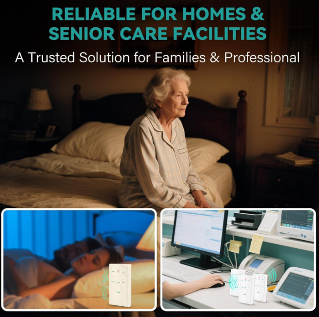 400FT Wireless Range – Reliable Alerts Across Rooms & Floors With an industry-leading 400FT range, this bed alarm system works seamlessly in homes, multi-level houses, assisted living centers, and nursing facilities. The portable pager features three alert settings (LED + sound + vibration) so users can choose the most convenient way to receive notifications, whether during the day or while sleeping.