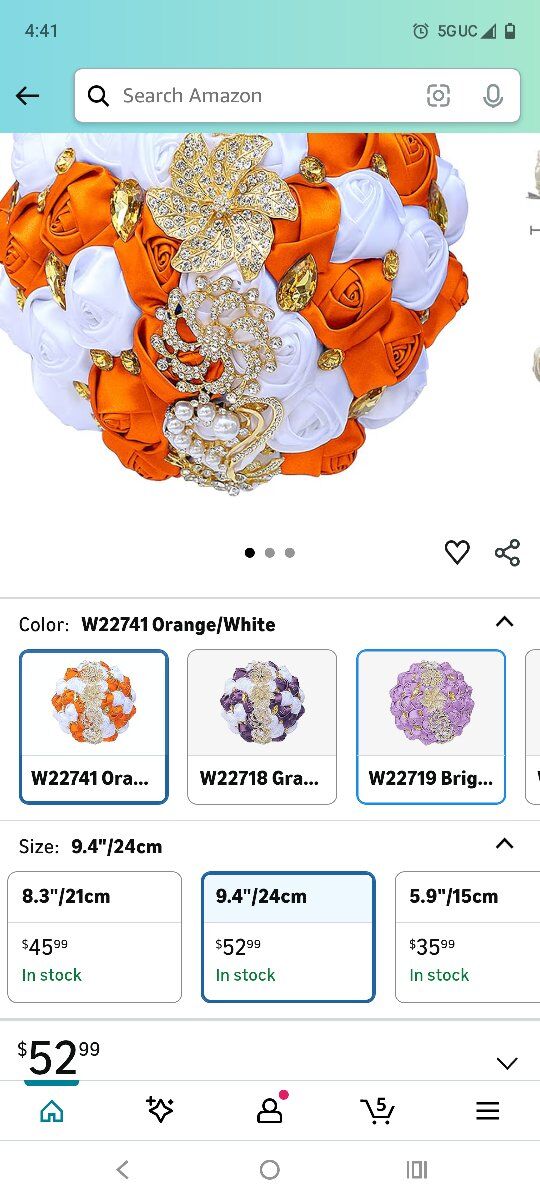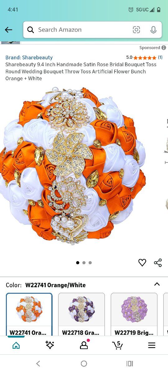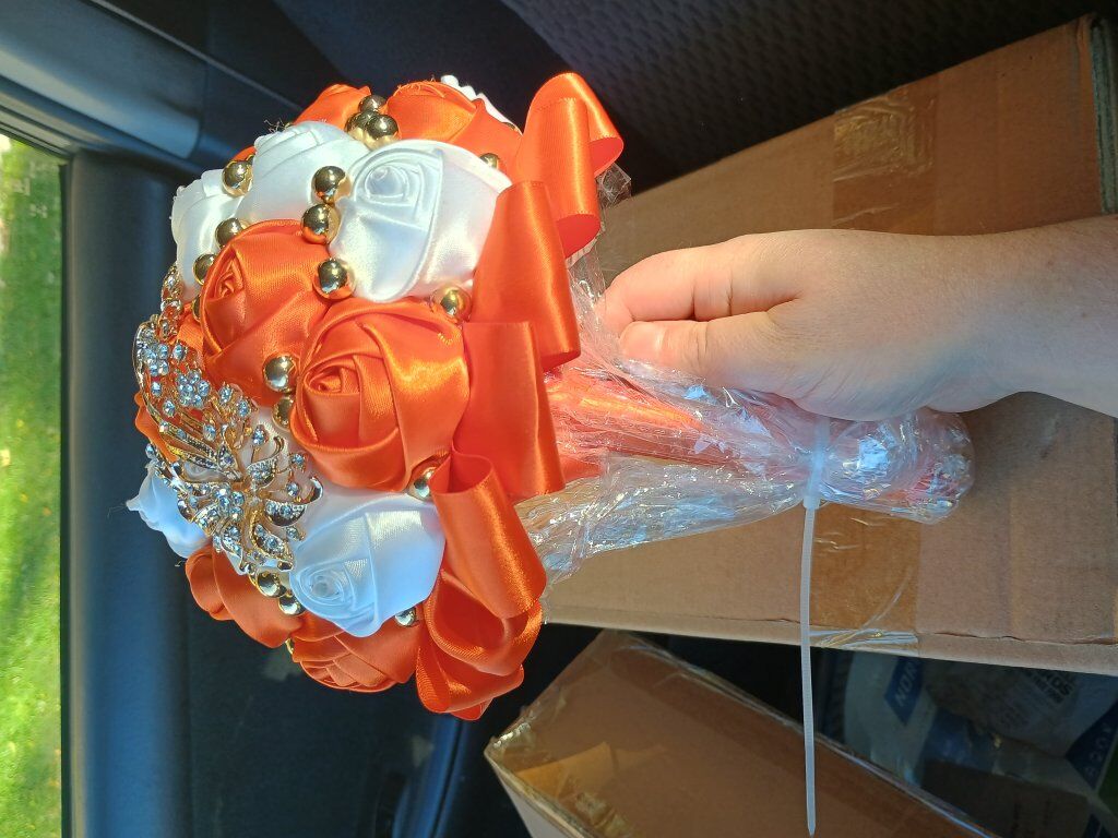 new share beauty 9.4 inch orange and white satin with jewels bridal bouquet or for bridal toss. retails for $53. selling for $30 cash pickup in Ogden either at the North end of town by 5 points or South end of town by wsu.
