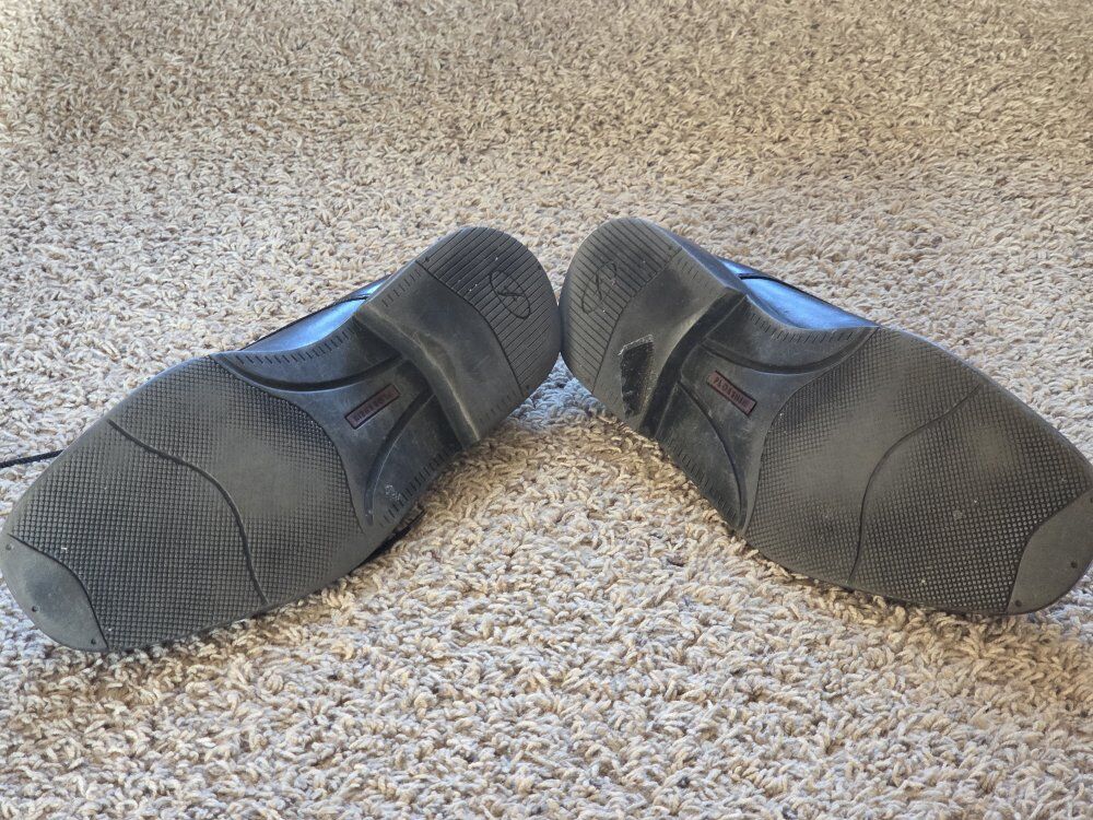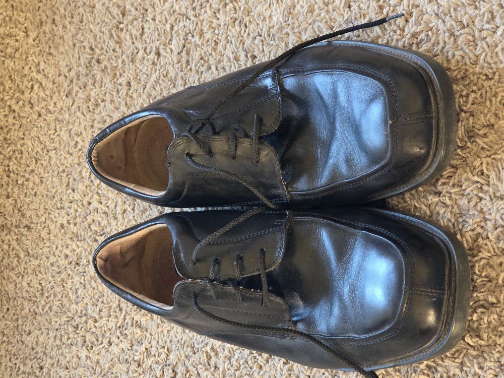 a nice pair of Florsheim men's dress shoes. size 13. Good condition. I think they're leather, but I'm not smart with these things