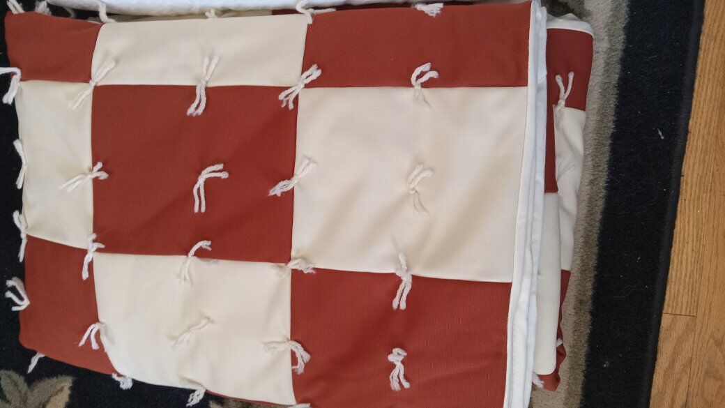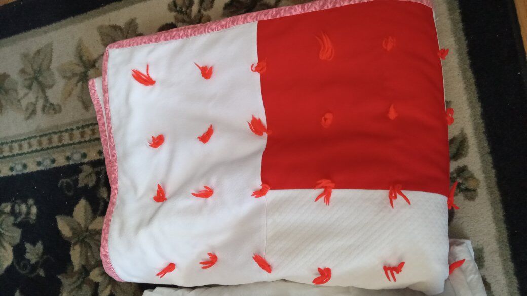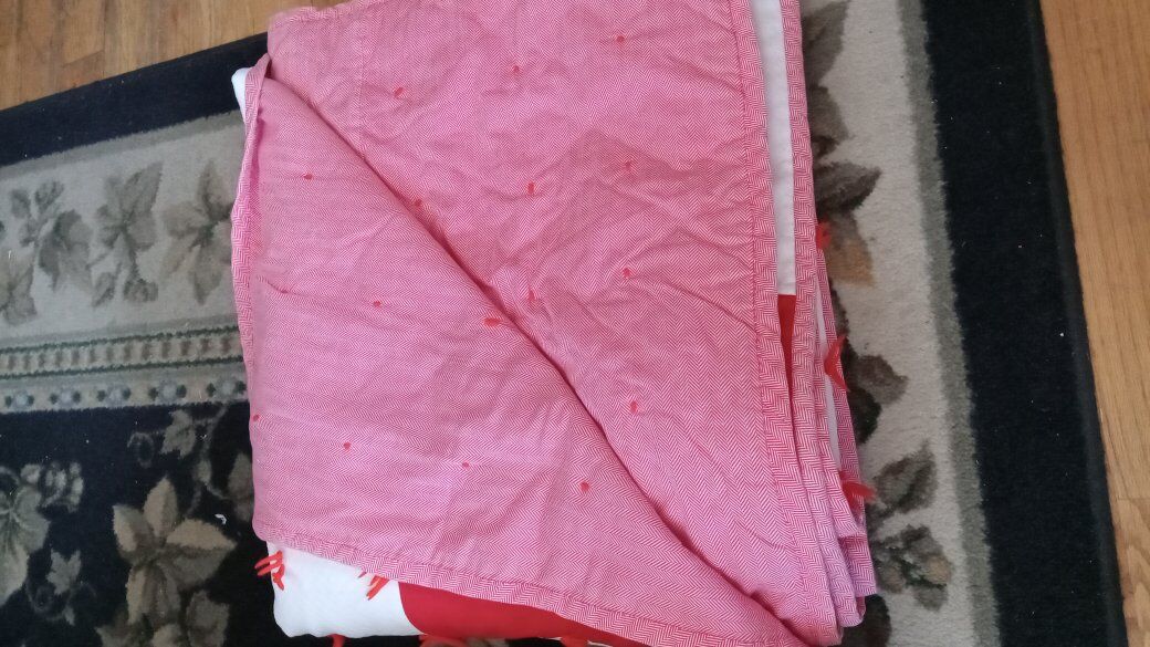 Venmo(Price reduced on 12/8) Up for sale are 2 Multicolored Quilts & 1 White Comforter Twin Sized. These quilts and comforter are in great condition, the red quilt and white Comforter have minor stains and wear.
