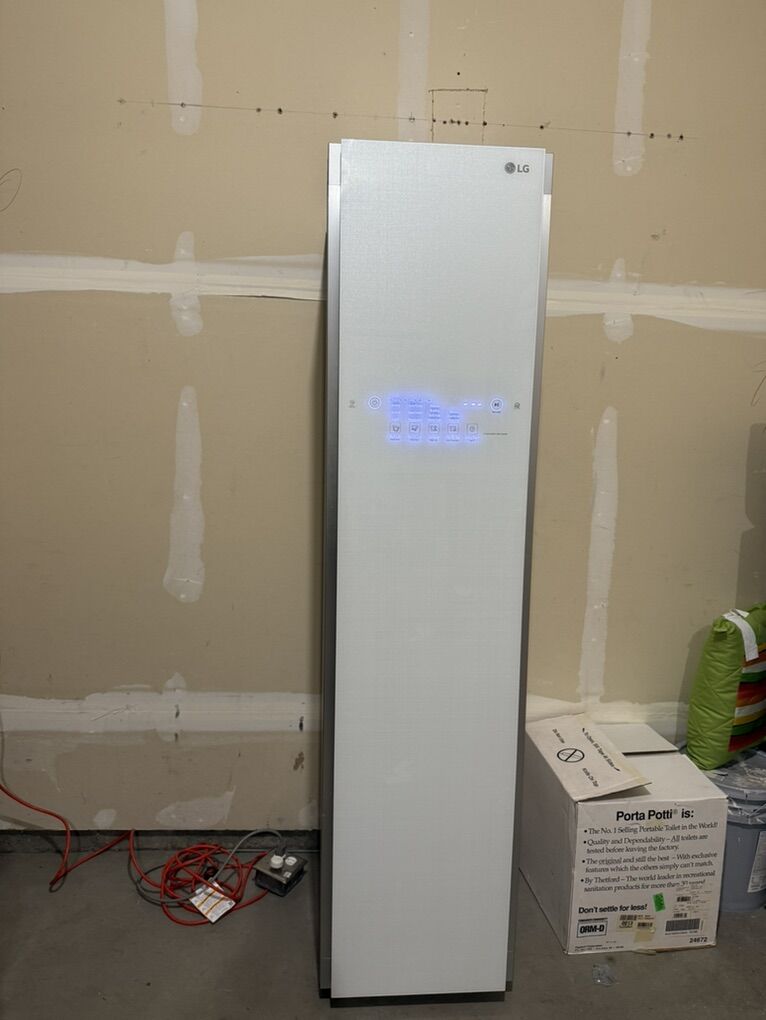 Upgrade your laundry room with the LG Styler. Refresh clothes between cleanings and reduce odors with the gentle power of steam. It even helps sanitize and removes allergens. Certified by the Asthma and Allergy Foundation of America for its superior performance in reducing bacteria and fungi by at least 99%. The LG Styler is the perfect laundry companion, ready to refresh when you are, with just the touch of a button. The elegant and efficient design makes it a perfect fit for any area in your home. Control key LG Styler features from anywhere, at any time, with ThinQ technology. It also works with popular voice-activated devices. The Styler from LG gives a whole new meaning to getting ready. Fits 3 hangers (2 included) + 1 pant hanger (included) for pant crease care.