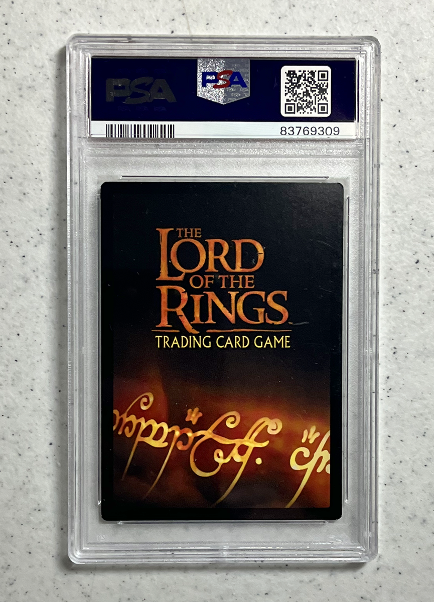 VenmoThis is a 2004 Lord of the Rings Trading Card Game card featuring the character Sauron, the Lord of the Rings. This particular card is a Reflection card manufactured by Decipher. It has been professionally graded by PSA with a grade of 8, adding to its collectible value for fans and collectors of the Lord of the Rings TCG. The card's certification number is 83769309, making it a sought-after item for those passionate about the franchise and its associated collectibles.