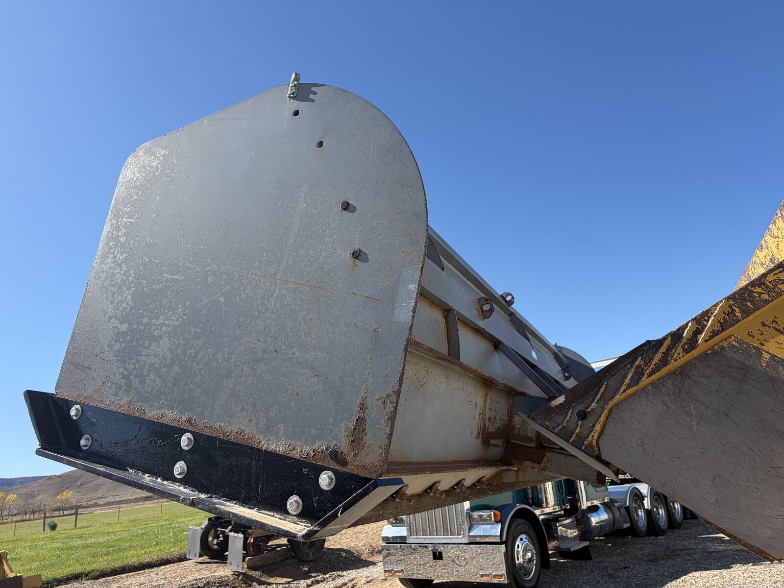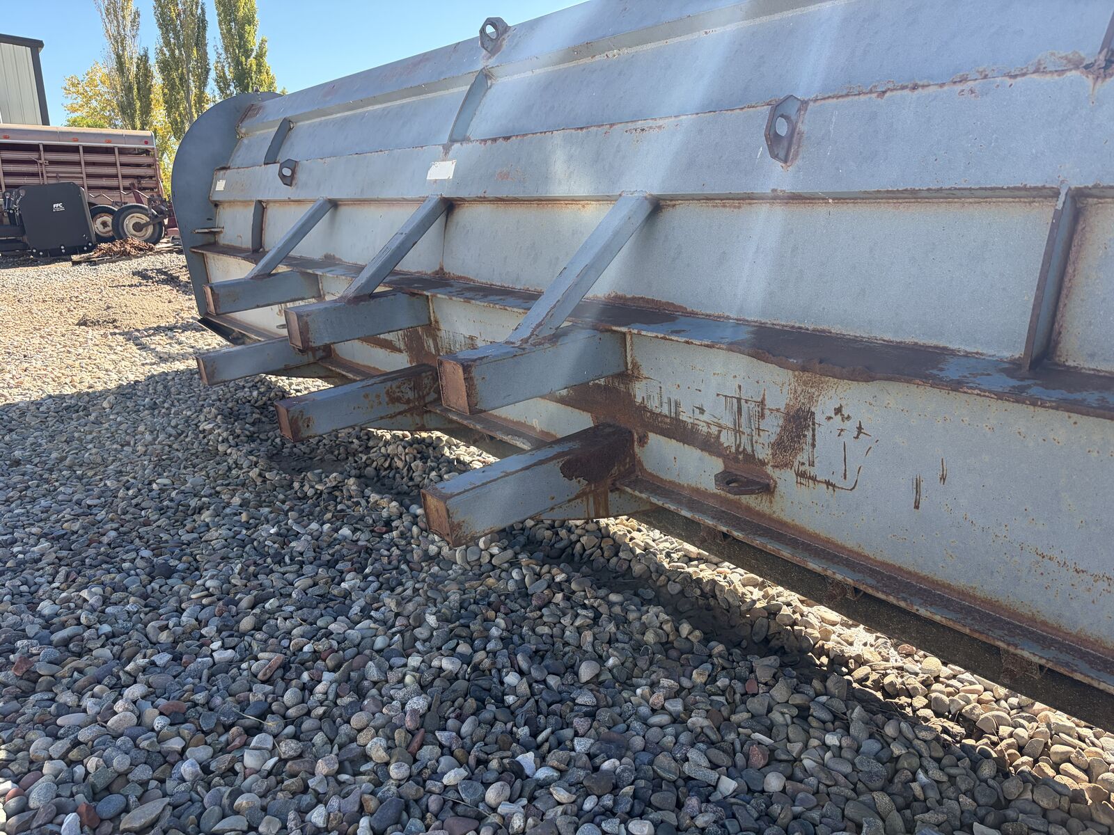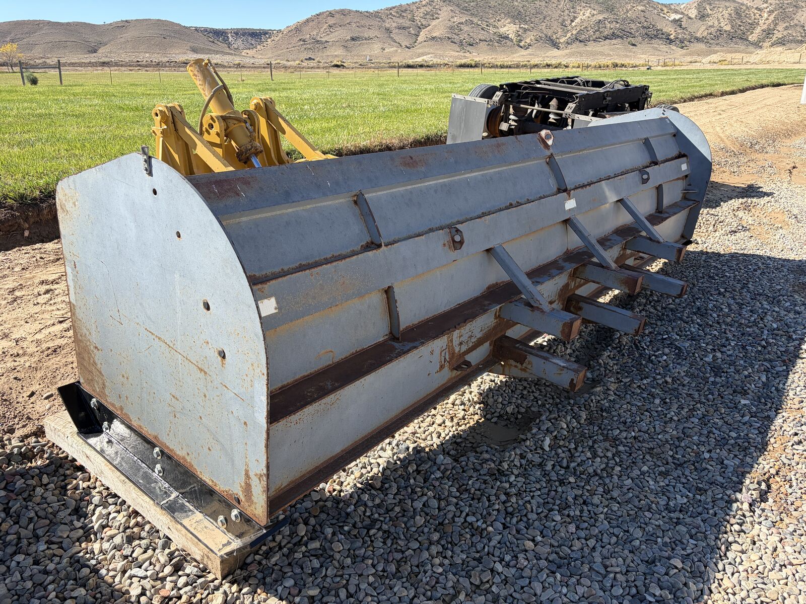 16' Wide Heavy Duty Snow Pusher Blade for Wheel Loaders. Flippable rubber blade has lots of wear left before it needs to be flipped. Blade is in good condition, side skids have very little wear. Asking $8,900.00 - Located in Loma, Colorado