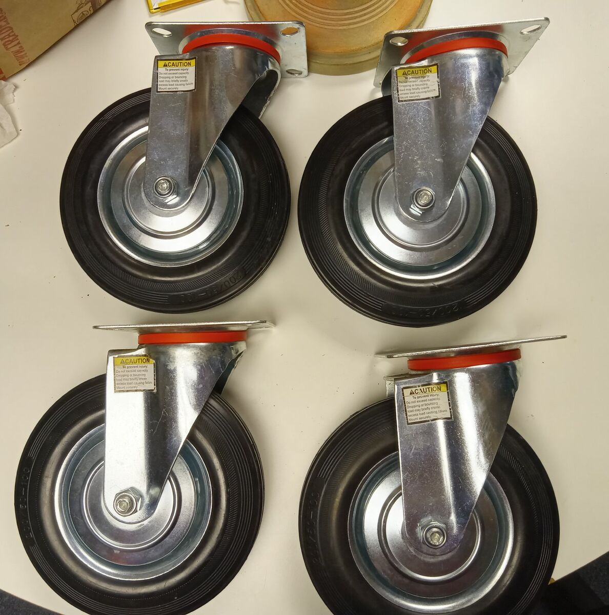 8 in. Tire Caster 450 lb set of 4 Cushioned Rubber Swivel Caster never used like new