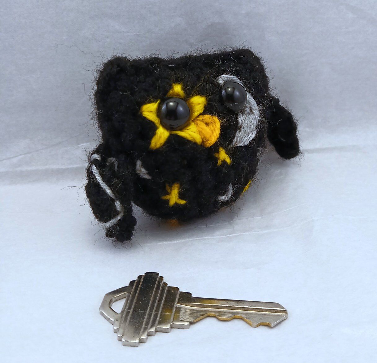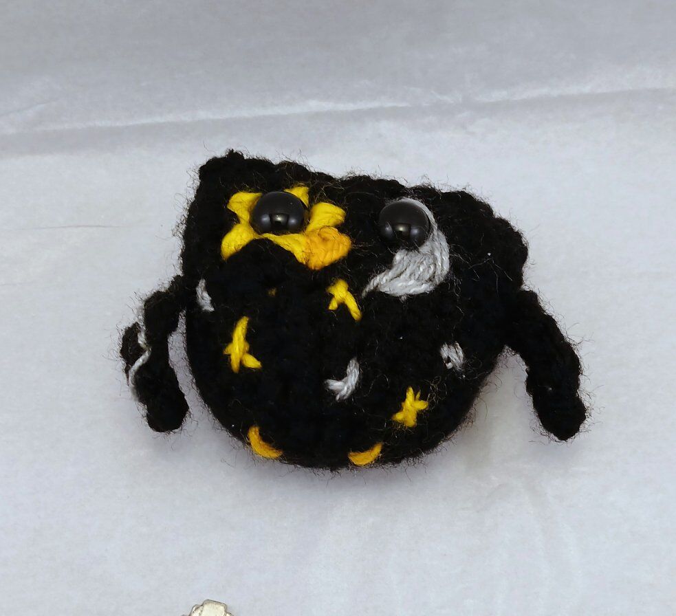 VenmoGalaxy themed owl, stuffed and ready to be put on a keychain, desk, or in a stocking. Measures 2.5 inches tall and 2.75 inches wide, fitting in the palm of your hand. 1.5 inches thick. House key for scale. Crocheted with acrylic yarn, it is machine washable and dry on cold delicate. $5 Cash or venmo. Check out my other listings! Eyes have been glued in so they pose less of a choking hazard for young children.