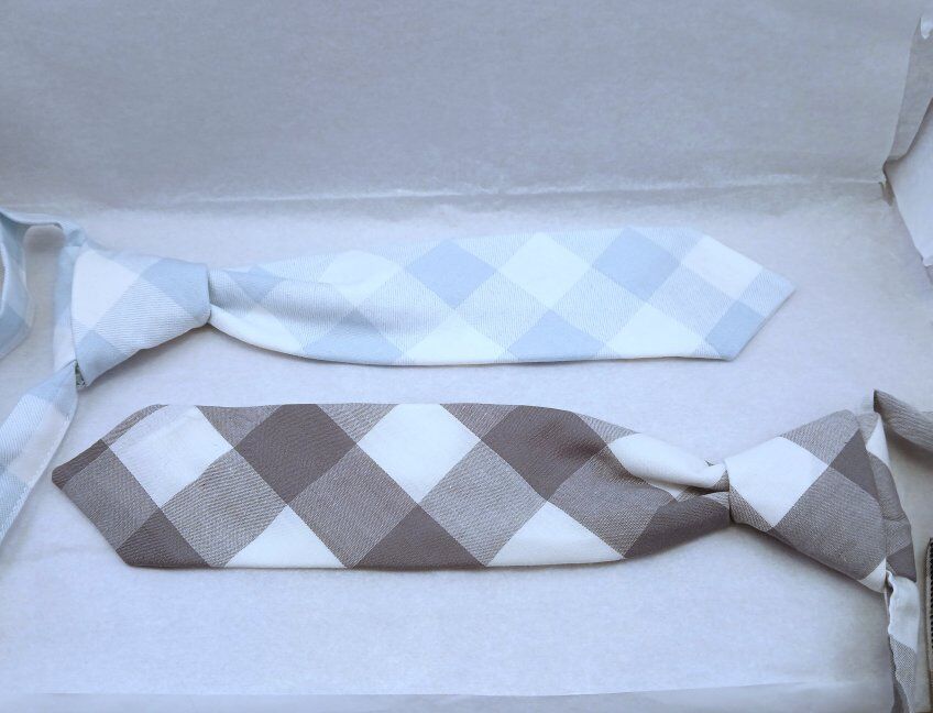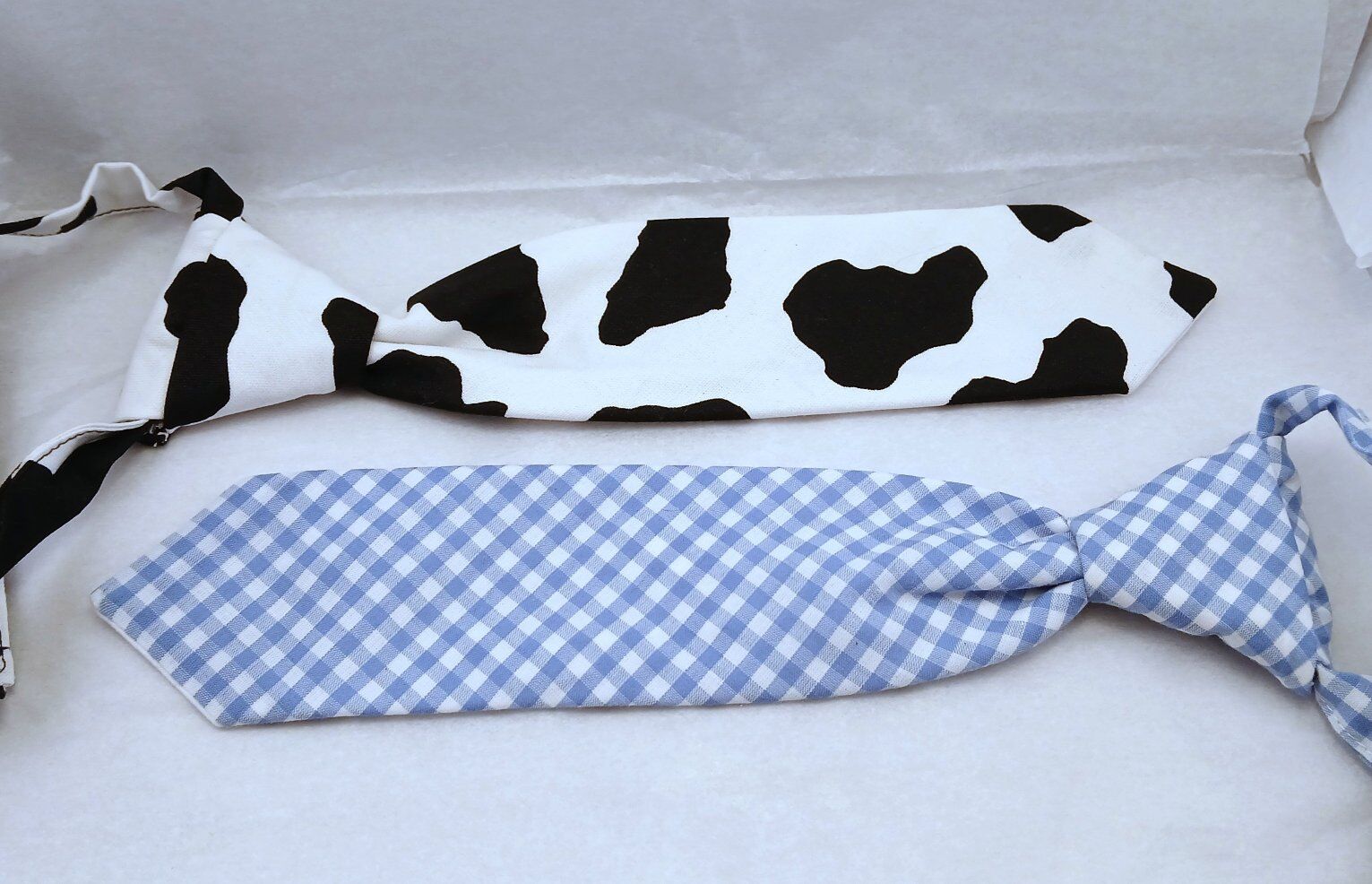 VenmoBoy ties, sized for 6 months up to 4 years old. Machine washable, adjustable neck sizing, and fun! Great for photos, weddings, events, and gifting! Measure 9 1/4 inches long, with the knot at 2 inches wide. Adjustable neck strap can be extended as long as 13 3/4 to 14 inches, meaning it grows with you. $9 for 1, or $7 each if you buy 2 or more. Cash or venmo. I have at least one of each design, up to 3 available of certain designs. Designs available: Giraffe Cow print Blue flowers Multi colored flowers Large yellow stripe White stars on blue White stars with red stripes Small blue and white checker Large blue and white checker Large gray and white checker