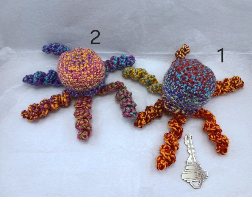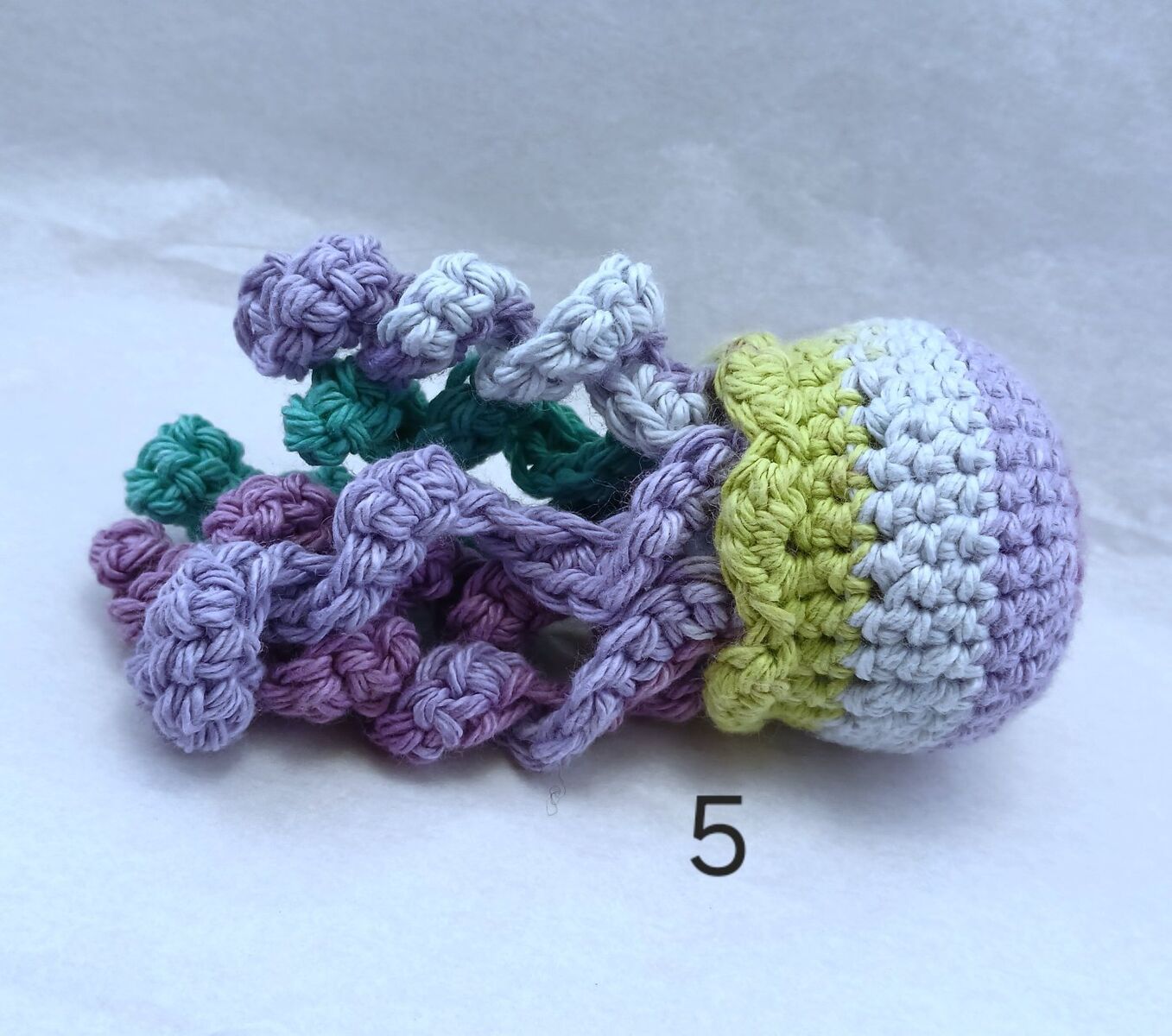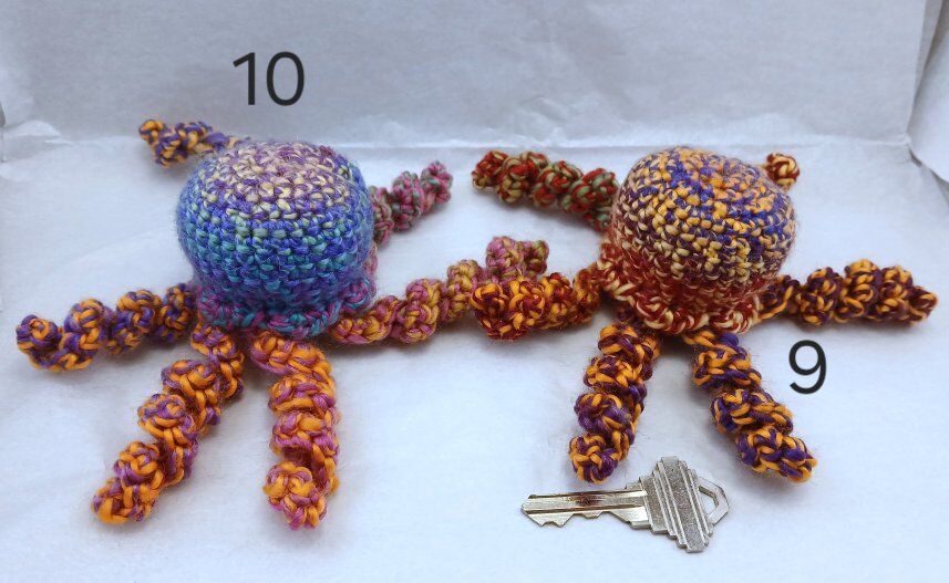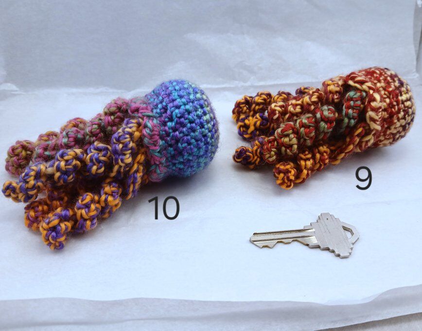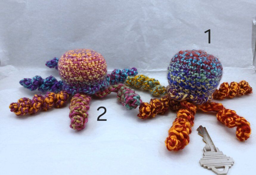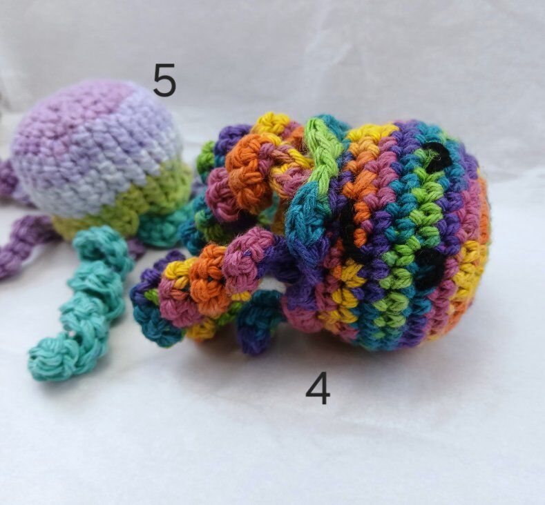 VenmoLittle jellyfish ready to brighten a keychain, desk, baby mobile, or as a fun gift. The larger ones measure about 4 1/2 inches tall with the head about 2 inches wide. House key for scale. Machine wash and dry on cold delicate. $3 each, cash or venmo. Check out my other listings!