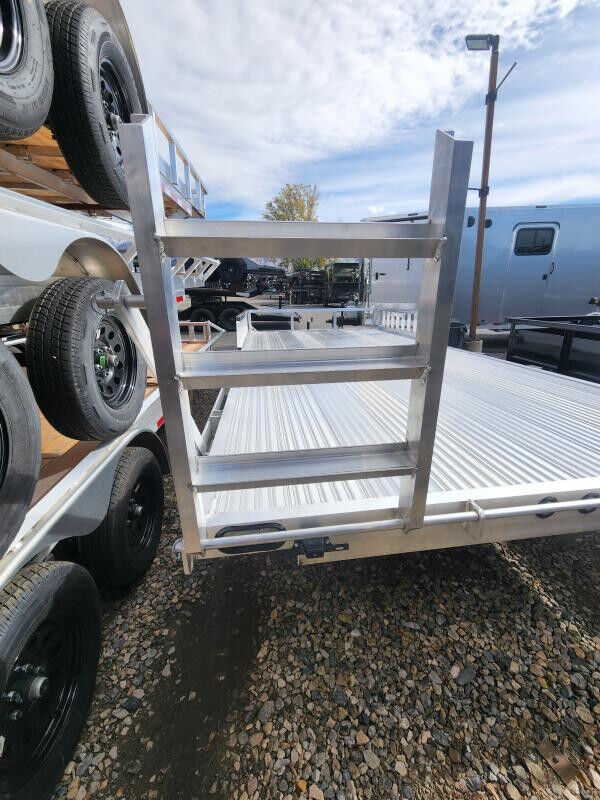 MODEL: 8X18 Deckover ATV Trailer SPECS WIDTH: 8' LENGTH: 18' DOOR(S)/RAMP(S): Slide Out Ramps WEIGHT: 1760 lb GVWR: 7000 lb PAYLOAD: 5240 lb AXLE(S): Tandem 3500 lb Axles\
