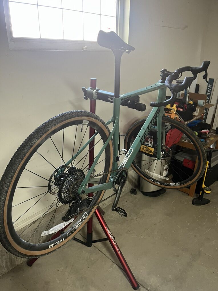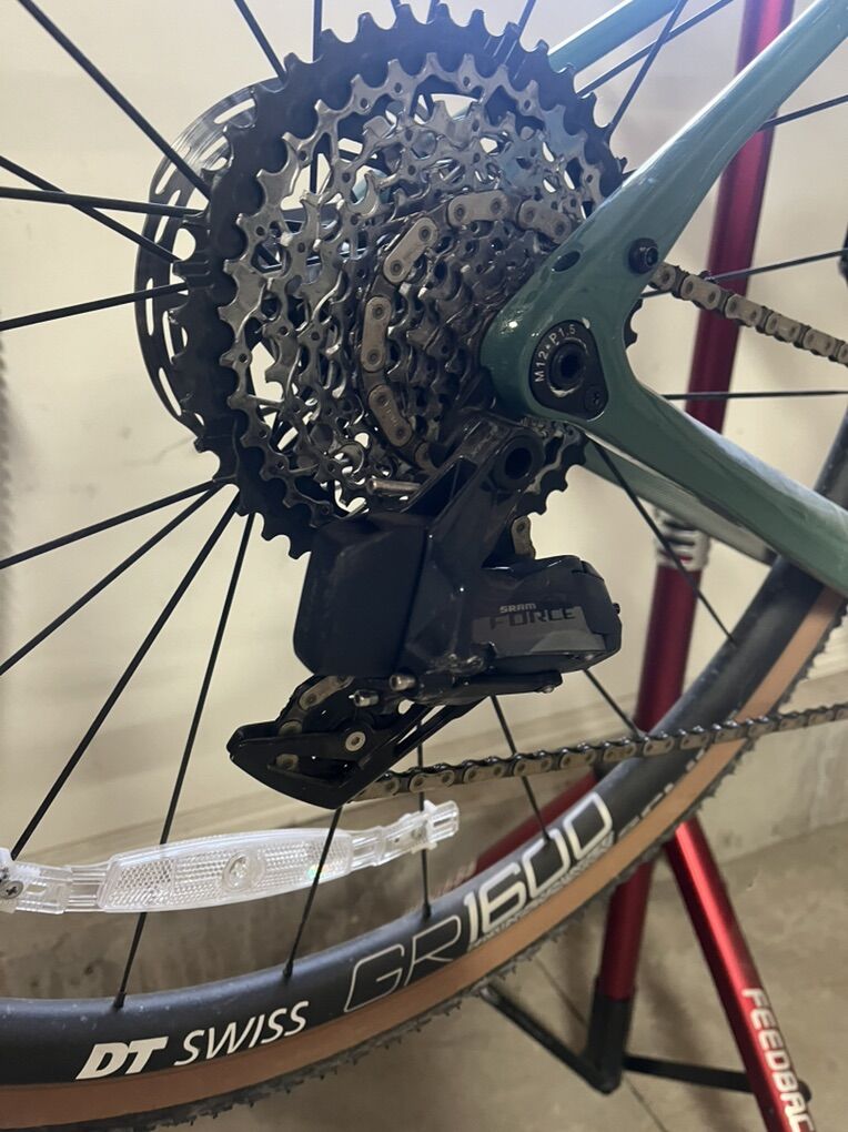 ZelleCarbon frame gravel bike with less than 100 miles on it, mostly paved. The Shafer Pro is built with a Force AXS XPLR groupset and DT Swiss GR1600 wheels, retails for $4,200.