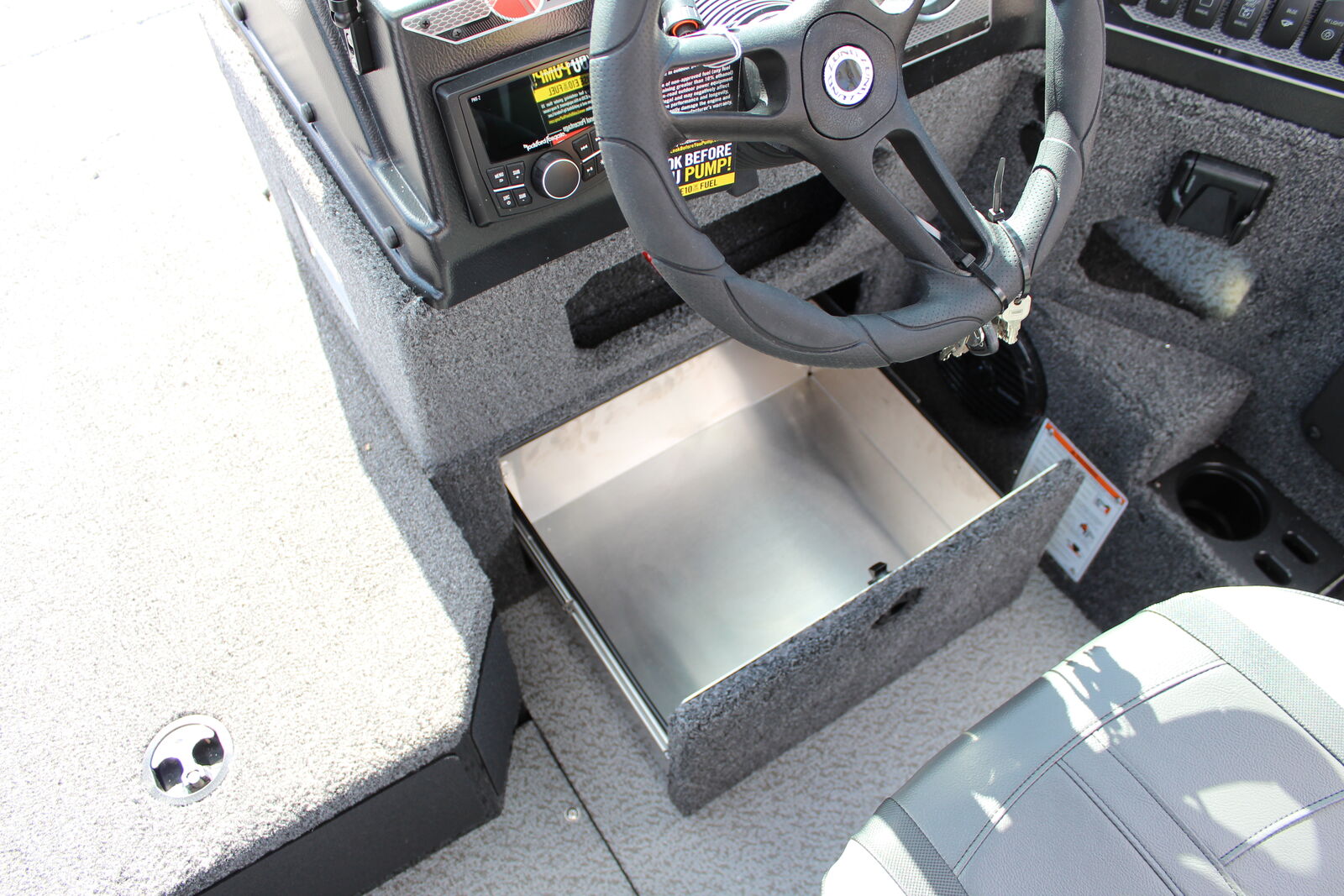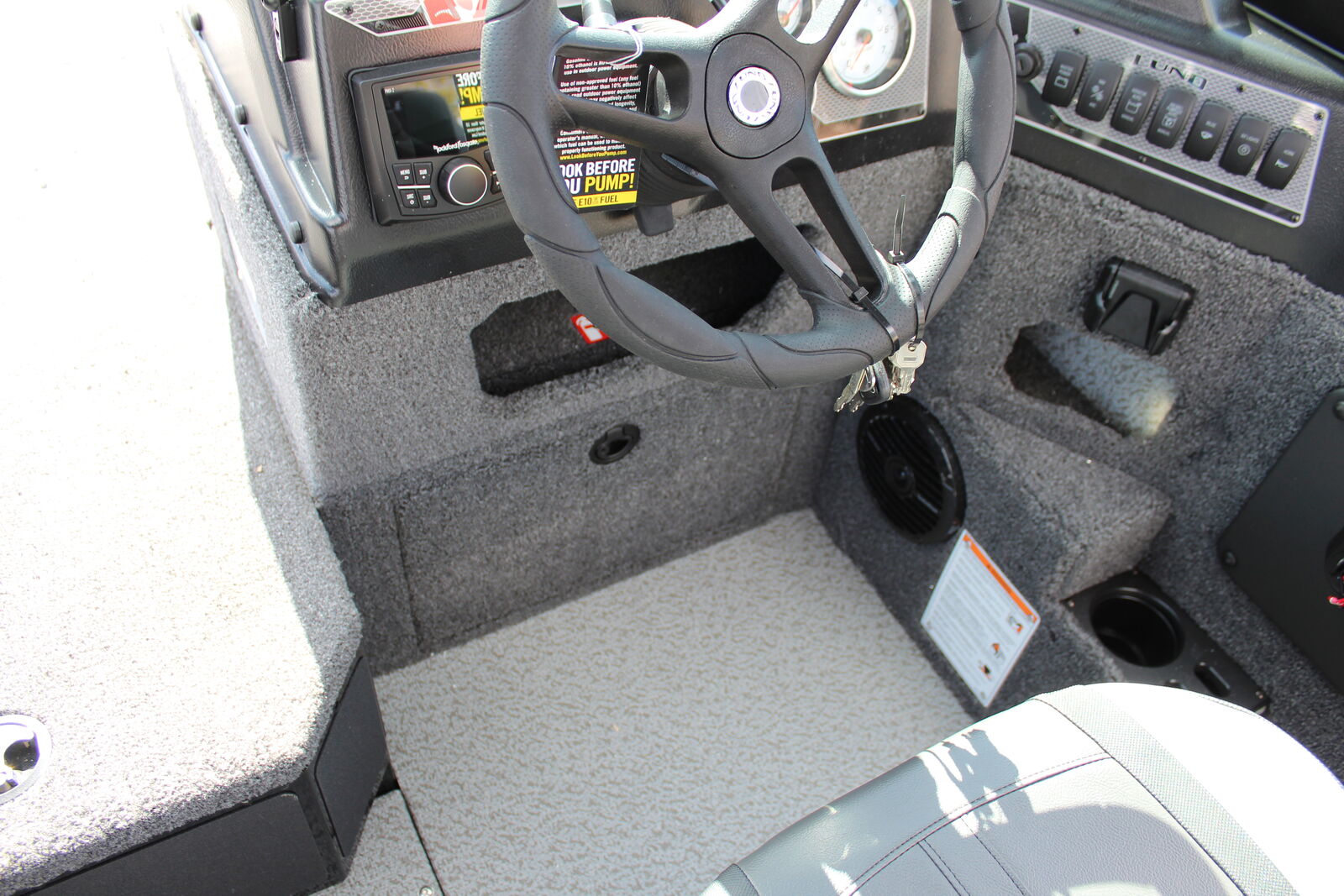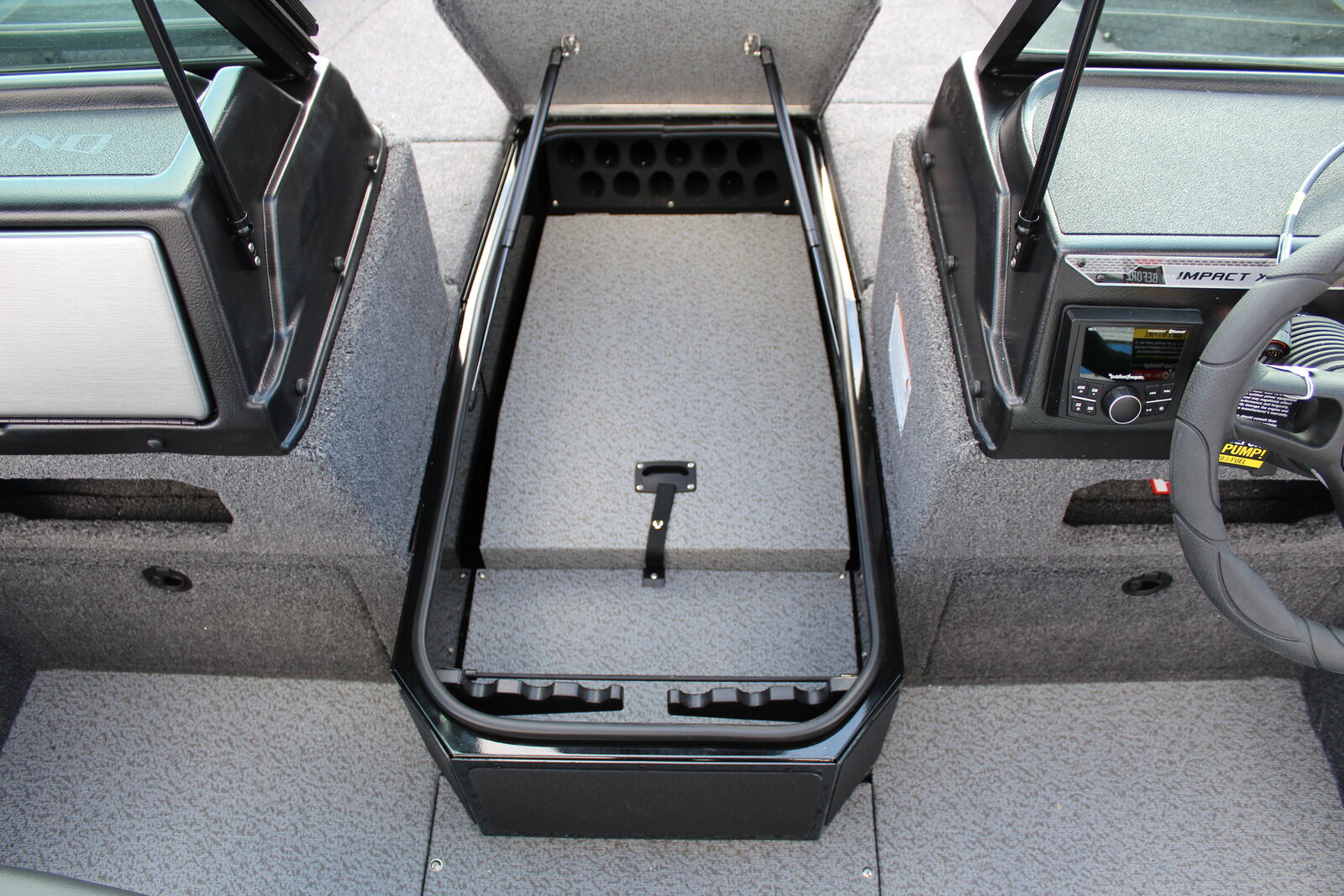 Powered by an engine with a maximum output of 150 horsepower, the Lund 1875 Impact XS Sport can reach speeds between 48 to 52 mph at sea level, delivering both performance and efficiency. The fuel tank holds 36 gallons, ensuring long fishing trips without frequent refueling. Despite its robust build and storage capacity, it maintains a manageable towing weight of 2,871 pounds, making it easy to transport with a standard vehicle.