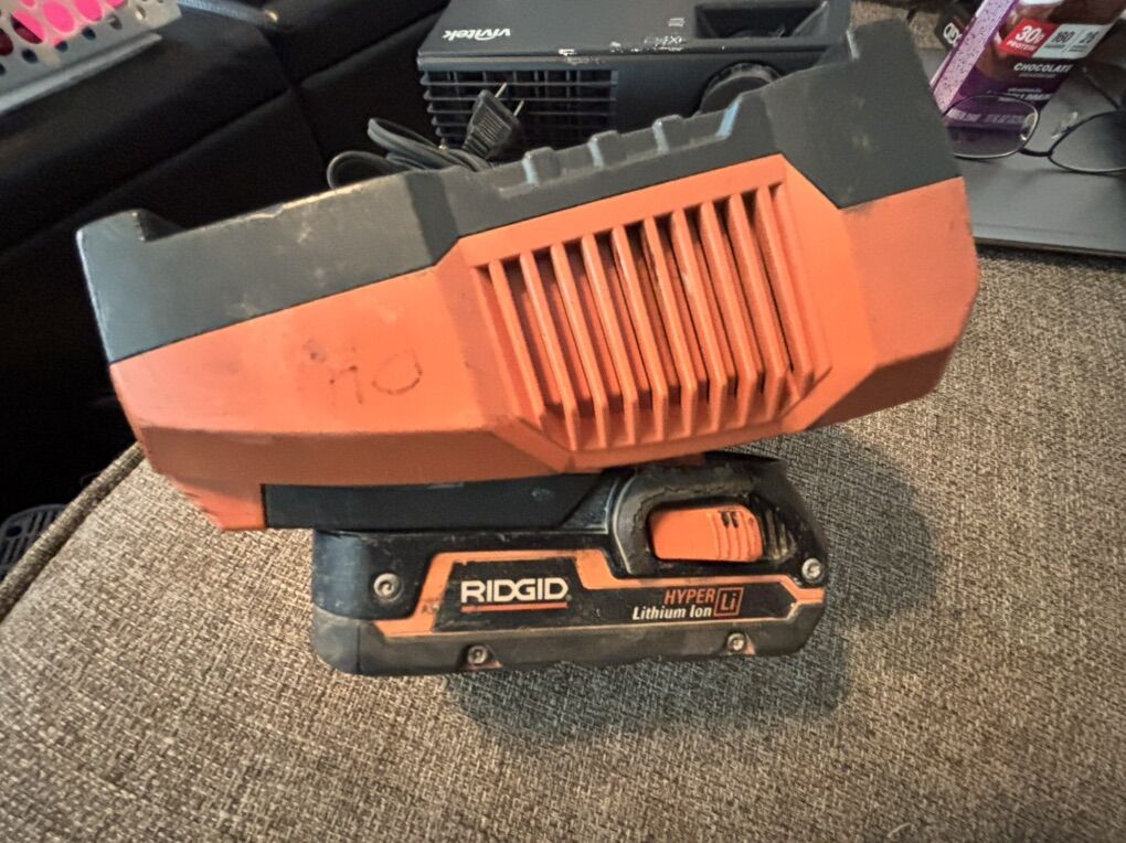Nice Ridgid r86091 battery charger with good working 18volt battery!! Looks and works great! These are running anywhere from 30.00 just for a used charger on eBay now as shown in photos! don’t pay retail prices, call Dustin instead at 801-205-3403, I need it gone!