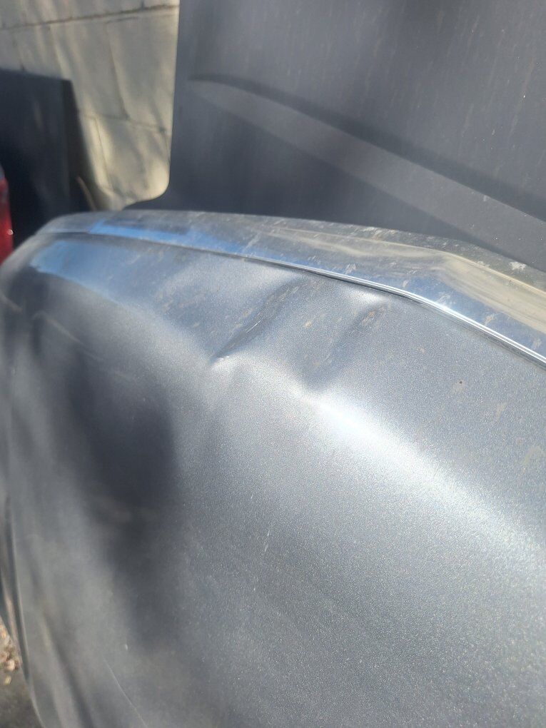 This is an urgent silver original hood has some damage comes with front chrome piece that is undamaged. Reasonable offer