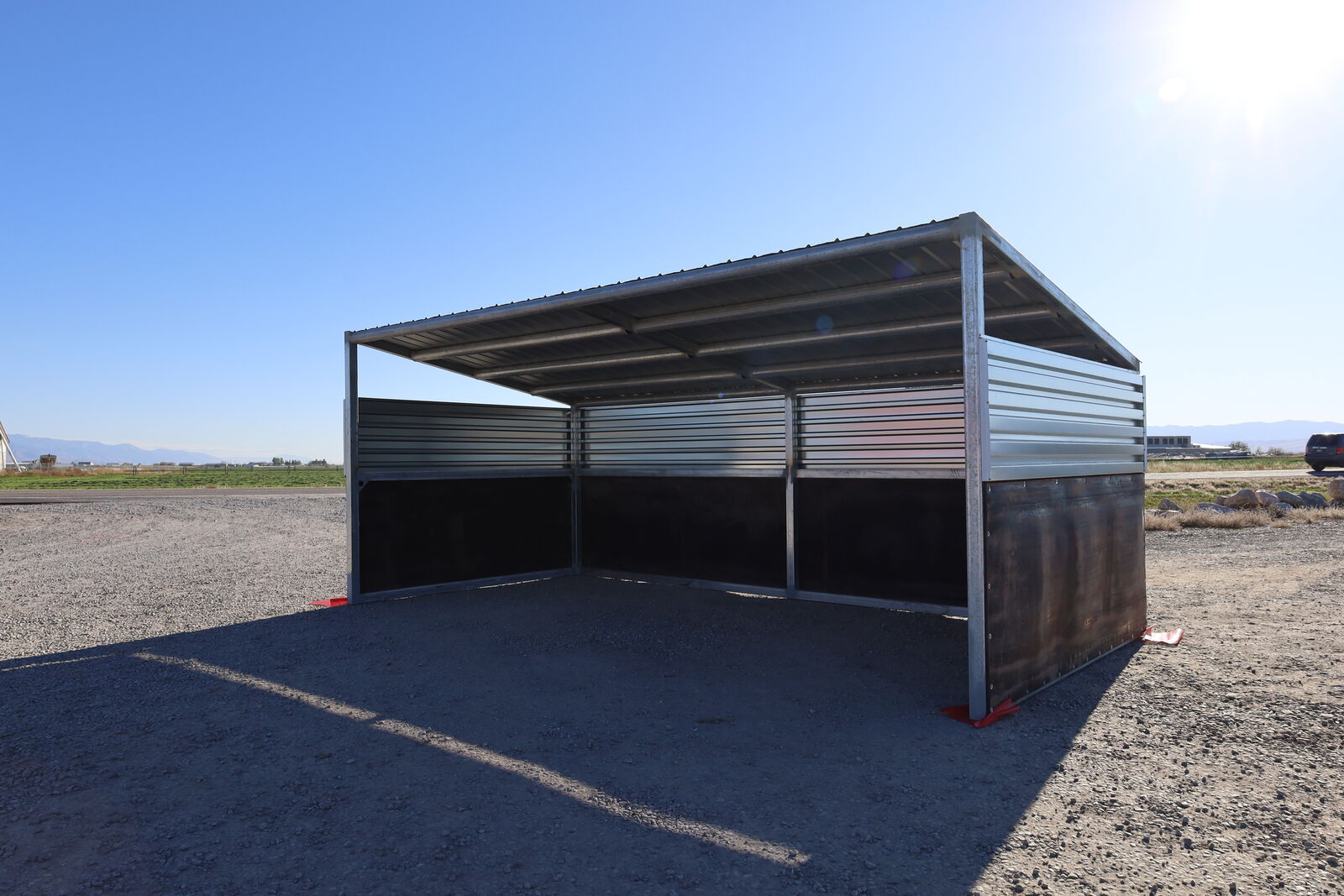 Now is the perfect time to order our 12x24 Stockman Shelter. This shelter is as heavy-duty as they come, made with 4" and 5" premium galvanized tubing, 3/4" kick and chew-proof rubber belting around the bottom half, and heavy-duty b-decking tin on the three sides. No more replacing wood or having to worry about your shelter holding up against your animals and the elements.