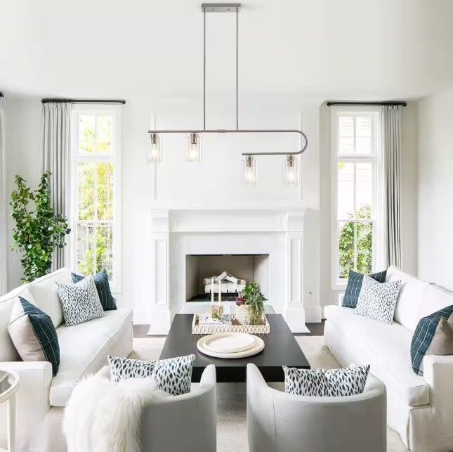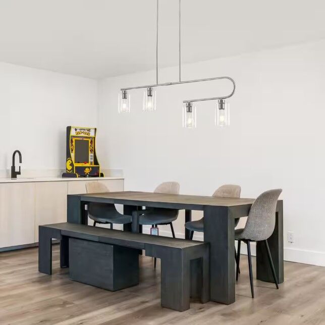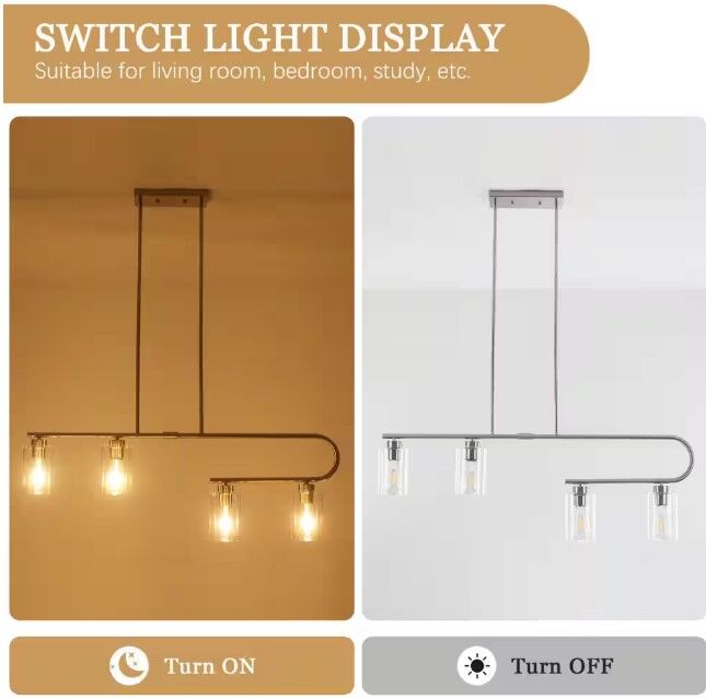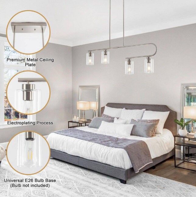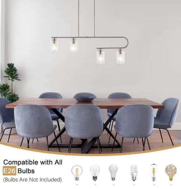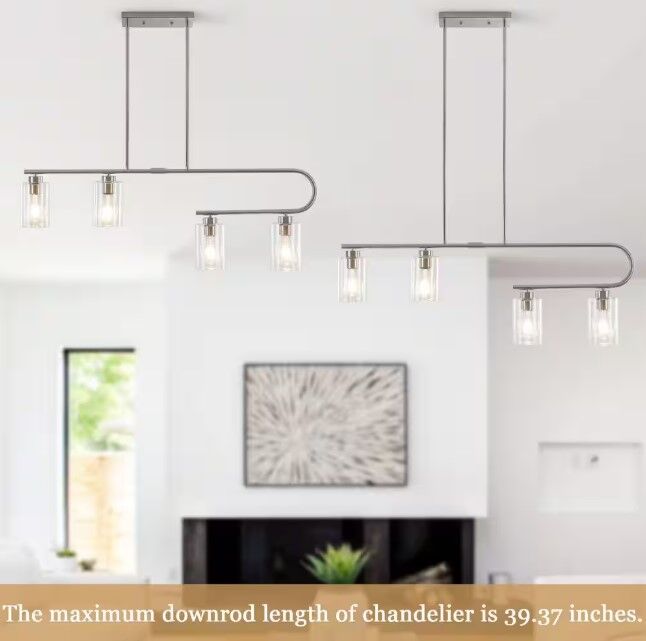 ApplePay4-Light Nickel Linear Chandelier for Dining Room No Bulbs Included Brush Nickel