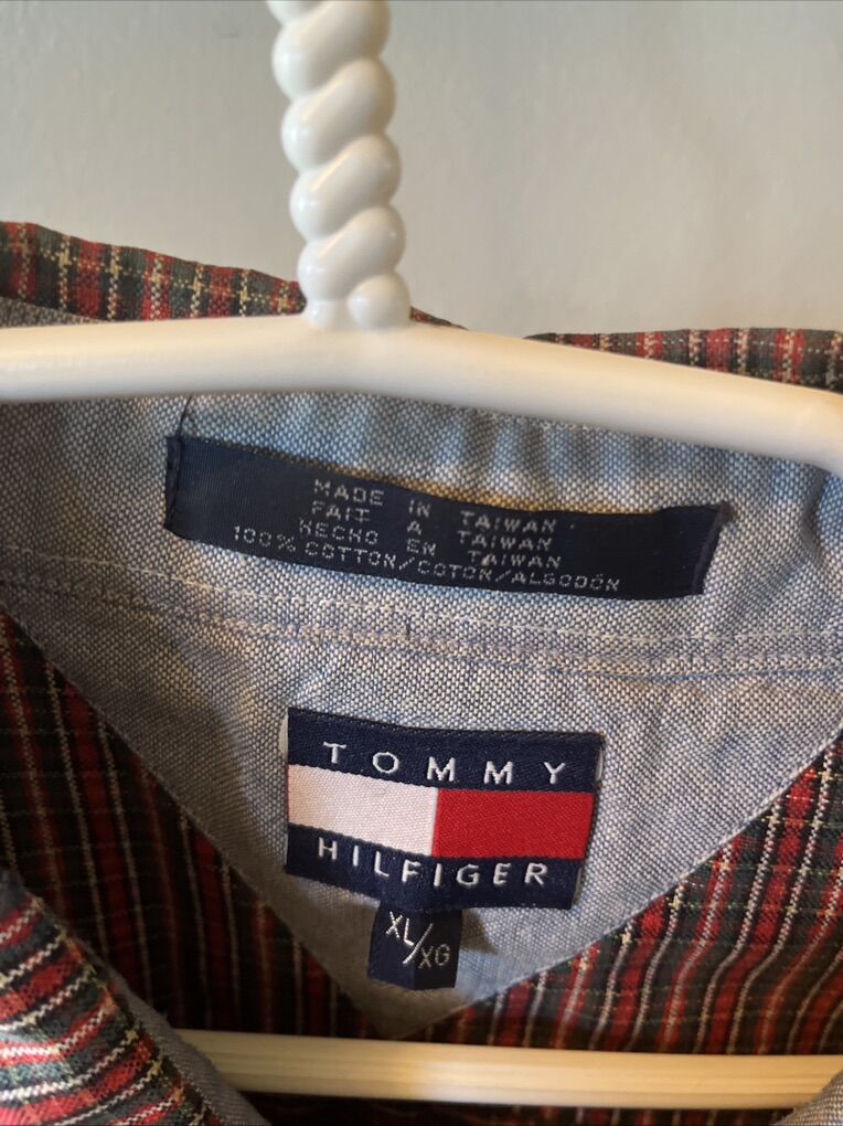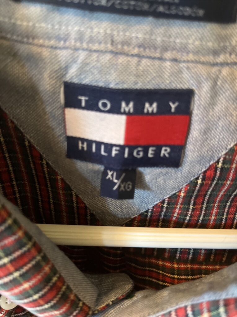 VenmoThe Tommy Hilfiger Men's Long Sleeve Plaid Shirt in size XL features a classic multicolor plaid pattern with a button-down collar and closure. Made of 100% cotton.