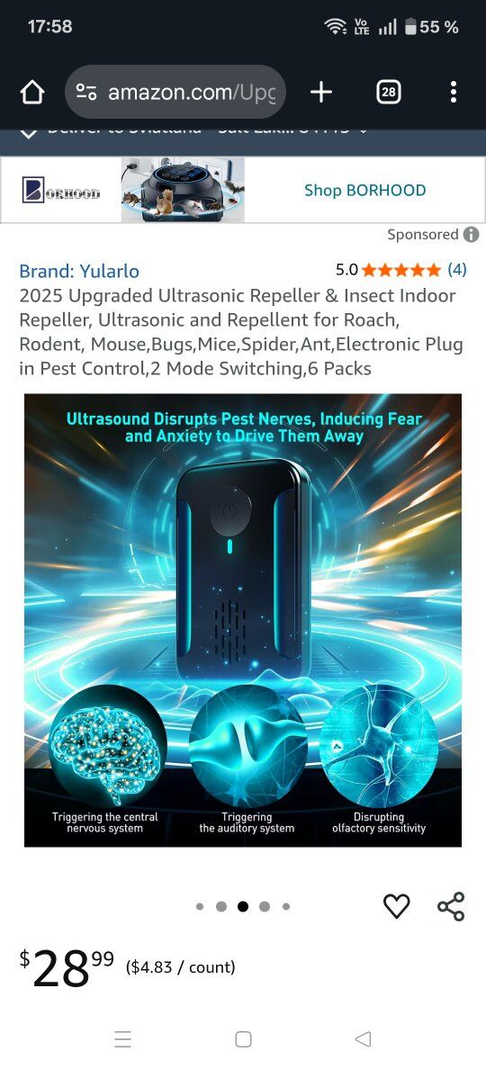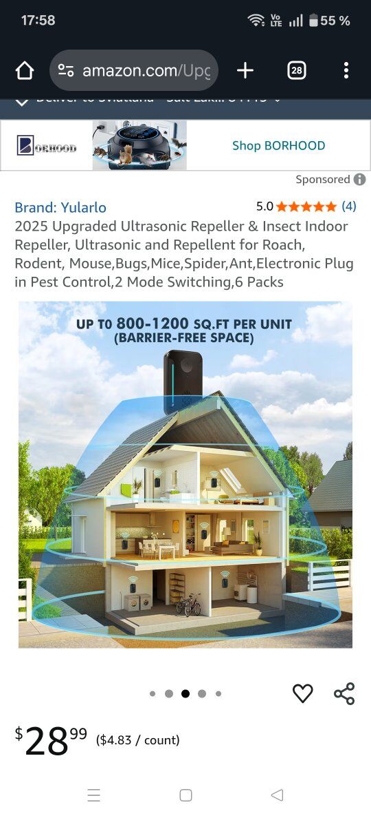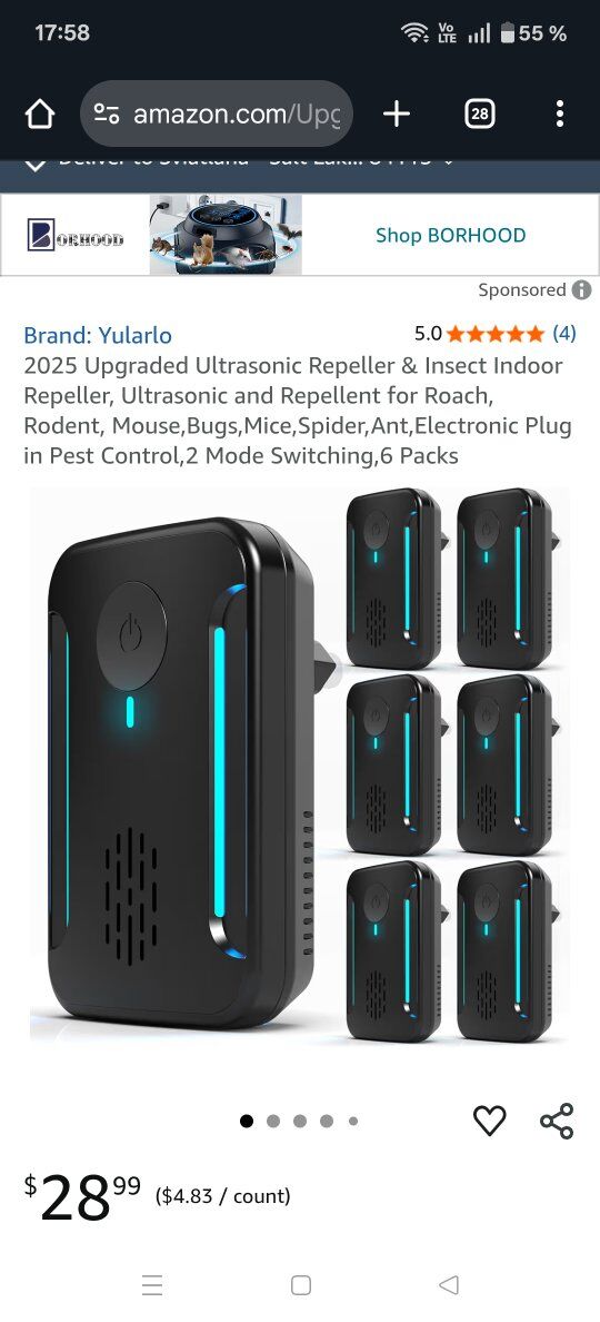 2025 Upgraded Ultrasonic Repeller & Insect Indoor Repeller, Ultrasonic and Repellent for Roach, Rodent, Mouse,Bugs,Mice,Spider,Ant,Electronic Plug in Pest Control,2 Mode Switching,6 Packs