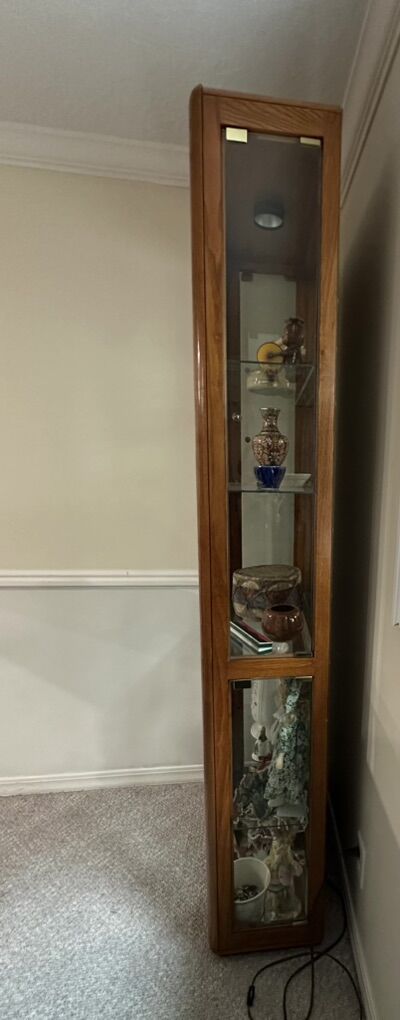 26” width x 12” depth x 78” height Heavy and well built with light Inside items not included
