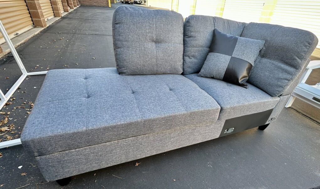 ApplePayAdd a touch of modern comfort to your space with this brand new gray upholstered chaise. Perfect for small apartments, offices, or reading nooks, it offers a stylish, space-saving design with deep cushioning and a soft woven linen texture.\