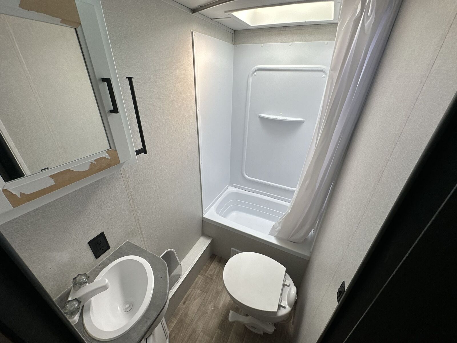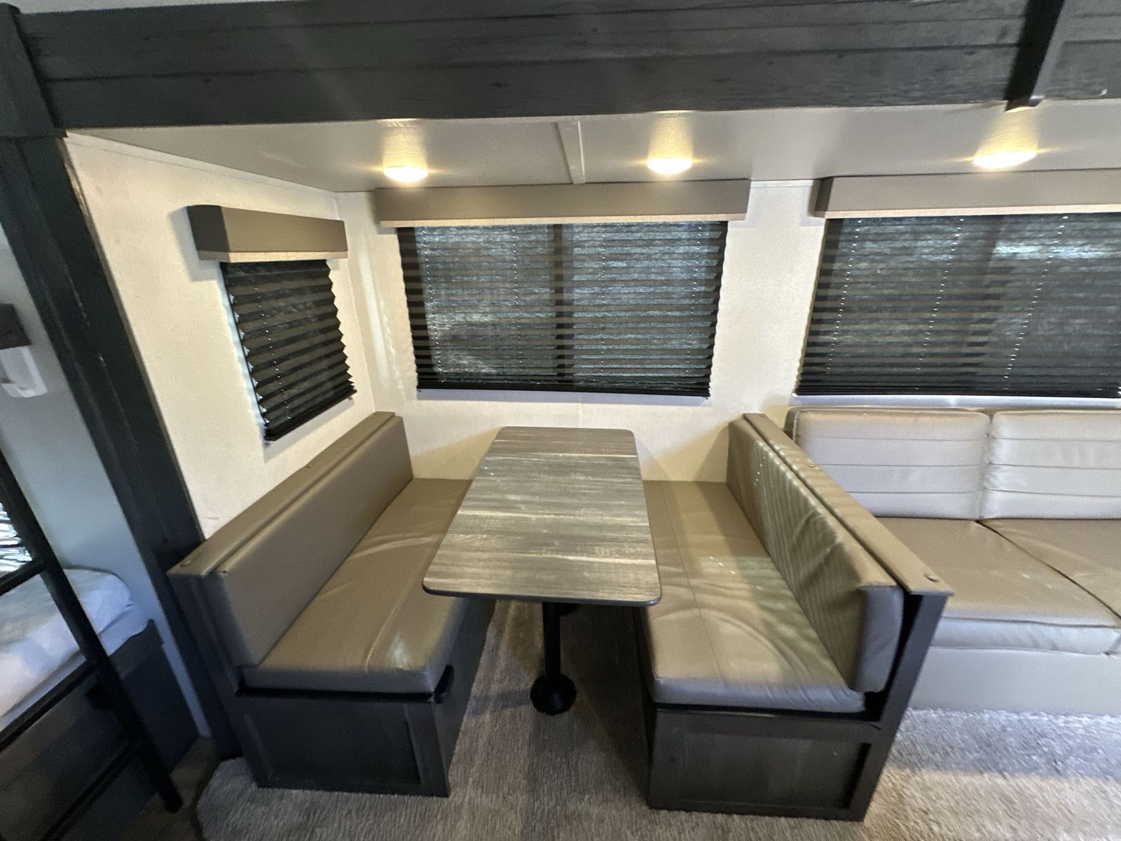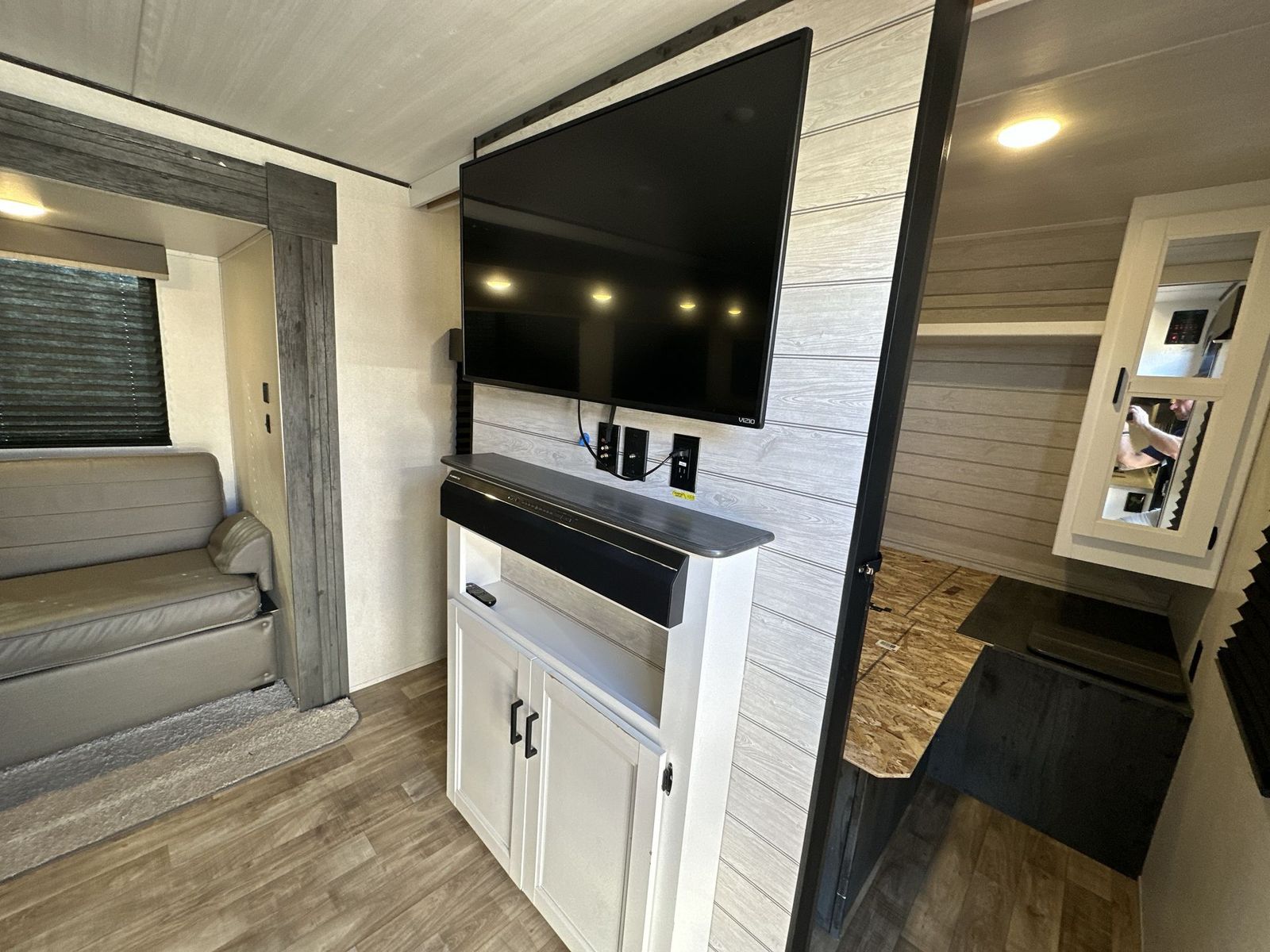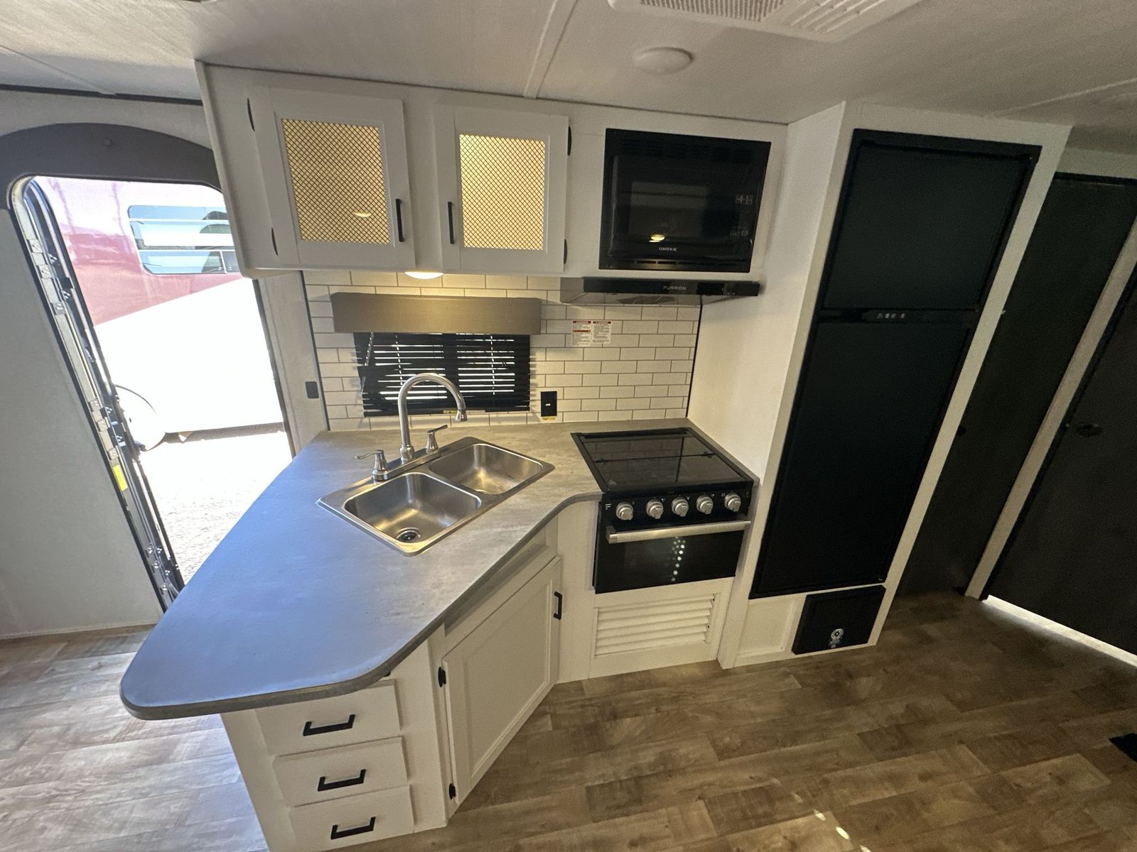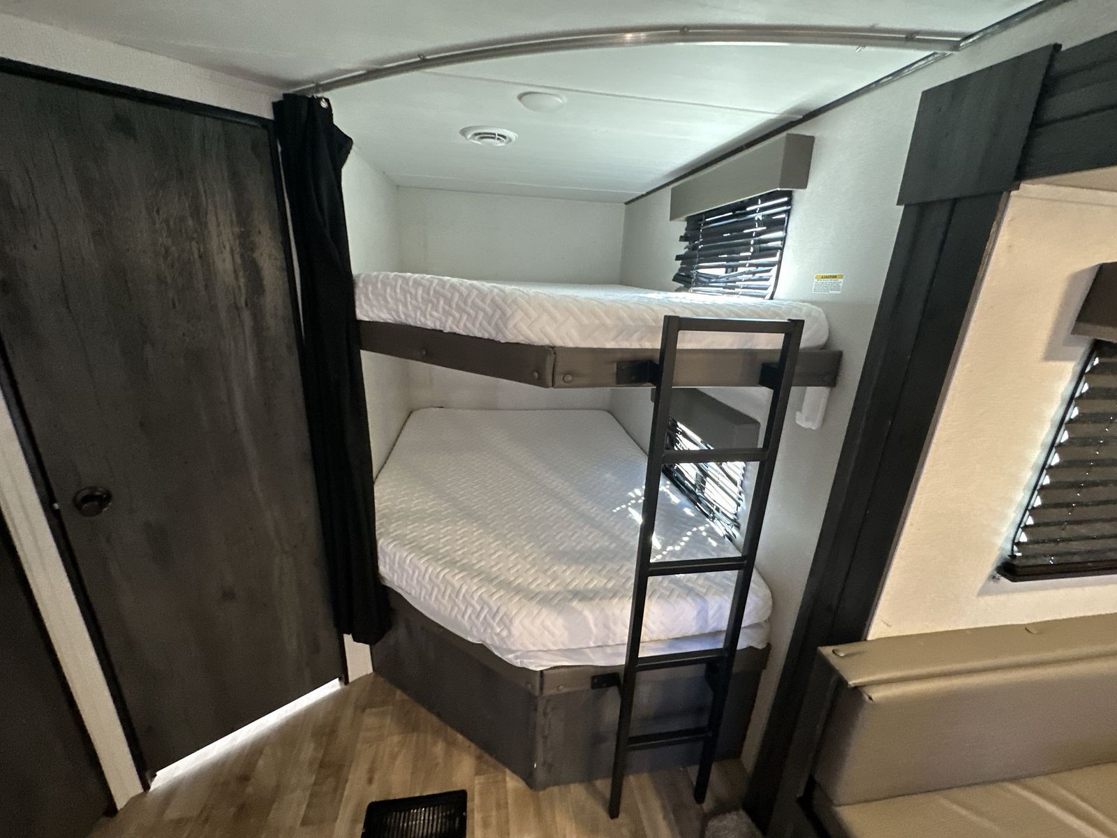 Keystone Hideout travel trailer 26BHWE highlights: Front Private Bedroom Rear Corner Bathroom Jackknife Sofa Fireplace Double-Size Bunks Welcome to your new Hideout travel trailer! It has a great layout ready for a full family or group of friends. The front private bedroom gives you a queen bed that you can rest on each night, and the laundry chute will help you keep your dirty clothes hidden. The large slide in the main living area holds the booth dinette and jackknife sofa, and you'll be able to use these pieces of furniture as beds too. The 52" x 74" bunk beds have a privacy curtain that you can draw when the kids are sleeping, and the 38" walk-in shower is ready to keep all of you clean. You can also add an optional 40" HDTV to the entertainment center so that you can have a movie night whenever you want. The Keystone Hideout travel trailer, fifth wheel, and destination trailer will be just what the doctor ordered for a stress-free holiday at your favorite campsite! There are a few exclusive features that you'll only find on a Keystone product, like the color-coded unified wiring, the preparations for 4G LTE and Wi-Fi, the Tuf-Lok™ thermoplastic duct joiners, the in-floor heating ducts, and the Tru-fit™ slide construction. Each model has a power awning for some shade in the afternoon, and the tinted safety glass windows will prevent the harmful UV rays from getting inside. You'll also have blackout night shades that you can close when you want privacy, and the SolarFlex 200 is a solar power system that will refill your battery to operate onboard 12V systems with just one day of peak sun exposure.