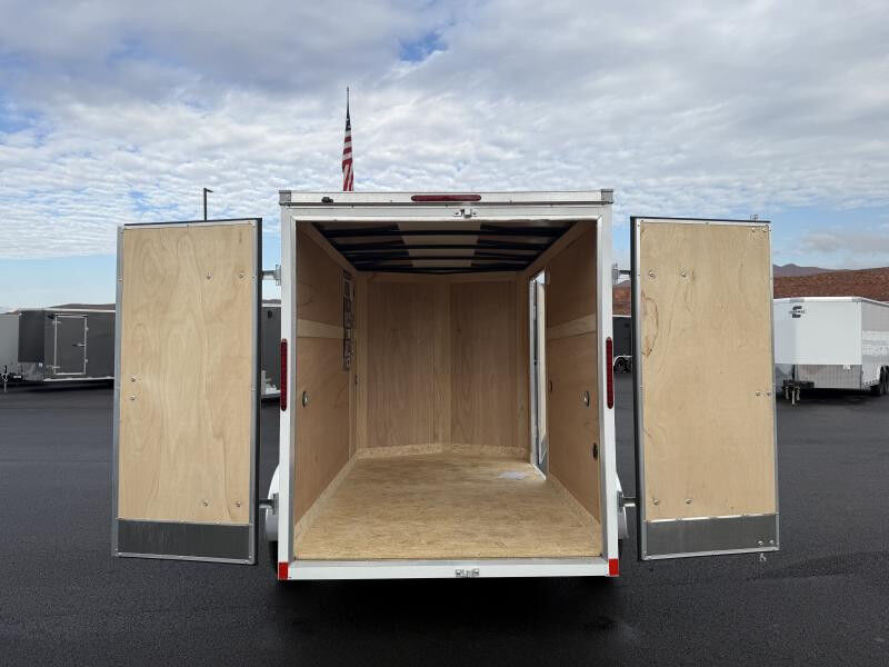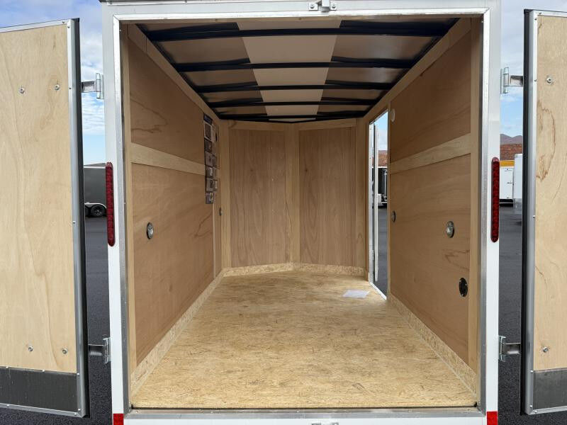 Standard Features: 2"x3" Tube Main Frame 1-Piece Aluminum Roof 16" Starbright Stoneguard 1/8" Economy Sidewall Liner 3/4" PlexCore Flooring (4) 500 lb. Wall Mounted Rope Rings 32" Side Door w/ Bar Lock Flow-Thru Sidewall Vents 12v Interior LED Dome Light 12v Exterior LED Lighting Smooth Aluminum Radius Fenders/Jeep Style Aluminum Fenders Undercoated Chassis