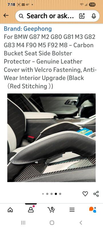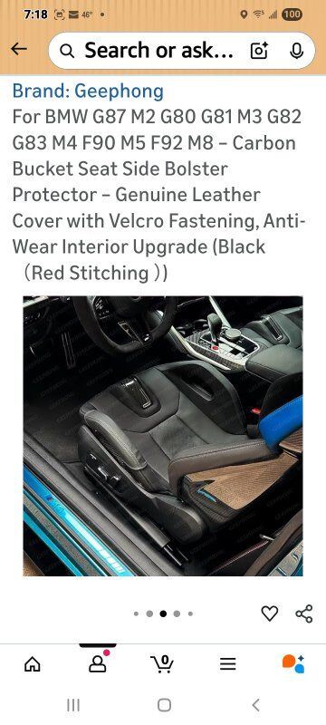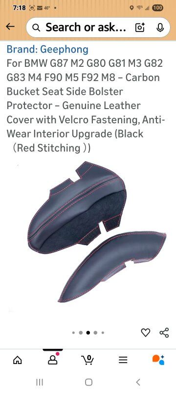BrandGeephong ColorBlack(Red Stitching ) MaterialLeather, Microfiber Auto Part PositionRight Inside ManufacturerGeephong Specifically designed for BMW M cars with carbon bucket seats, covering the vulnerable outer bolster area without affecting seat comfort or adjustment. Constructed from real leather with select microfiber accents (varies by color), blending durability with a refined factory look. Prevents the common issue of bolster cracking and peeling caused by daily rubbing—saving time, money, and frustration from costly repairs. Installs easily using integrated Velcro strips. No drilling, no tools, and removable for cleaning or repositioning. Preserves the condition of OEM seats and improves long-term cabin quality—ideal for detail-oriented M owners.
