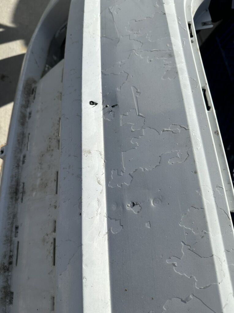 Clear coat is peeling. Not perfect. But it’s in one piece. Will need to be stripped and painted. Fits 2007 thru 2013 Yukon Denali. $75