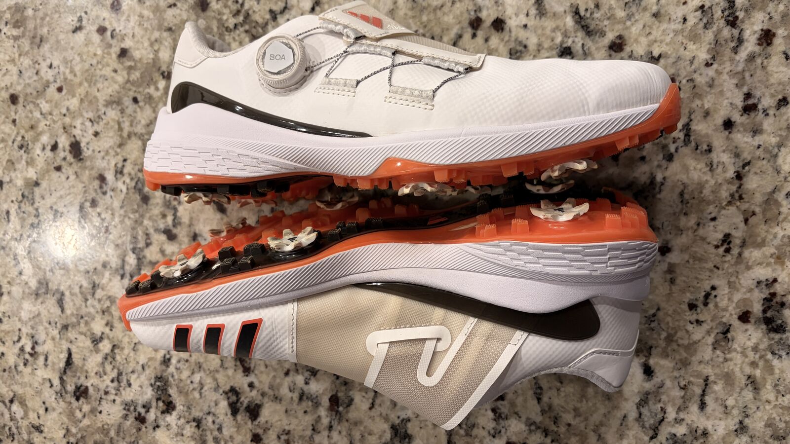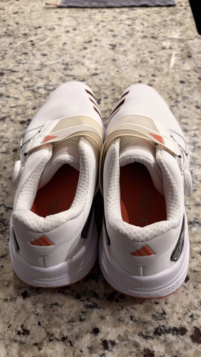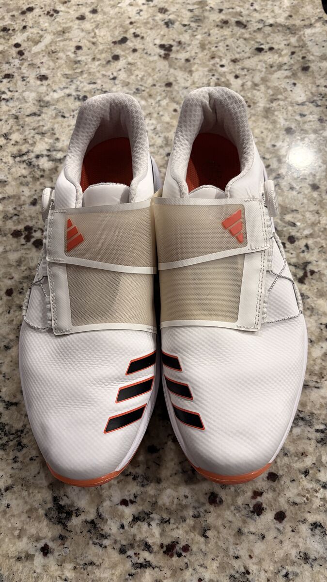 The men's adidas ZG23 is a lightweight performance golf shoe that redefines what a lightweight shoe can be. A BOA® Fit System offers a precise, micro-adjustable fit while the hybrid Lightstrike midsole and Sprintskin microfiber-leather upper provide comfort and support for powerful drives. A six-cleat Thintech outsole digs in for powerful drives. A waterproof upper keeps your feet dry in damp conditions. Made with a series of recycled materials, this upper features at least 50% recycled content. This product represents just one of our solutions to help end plastic waste.